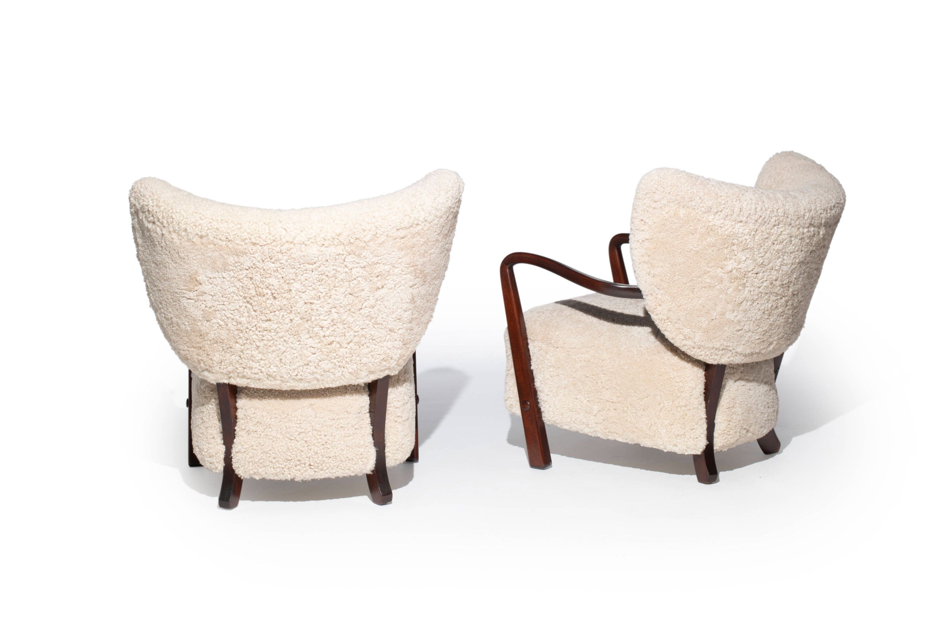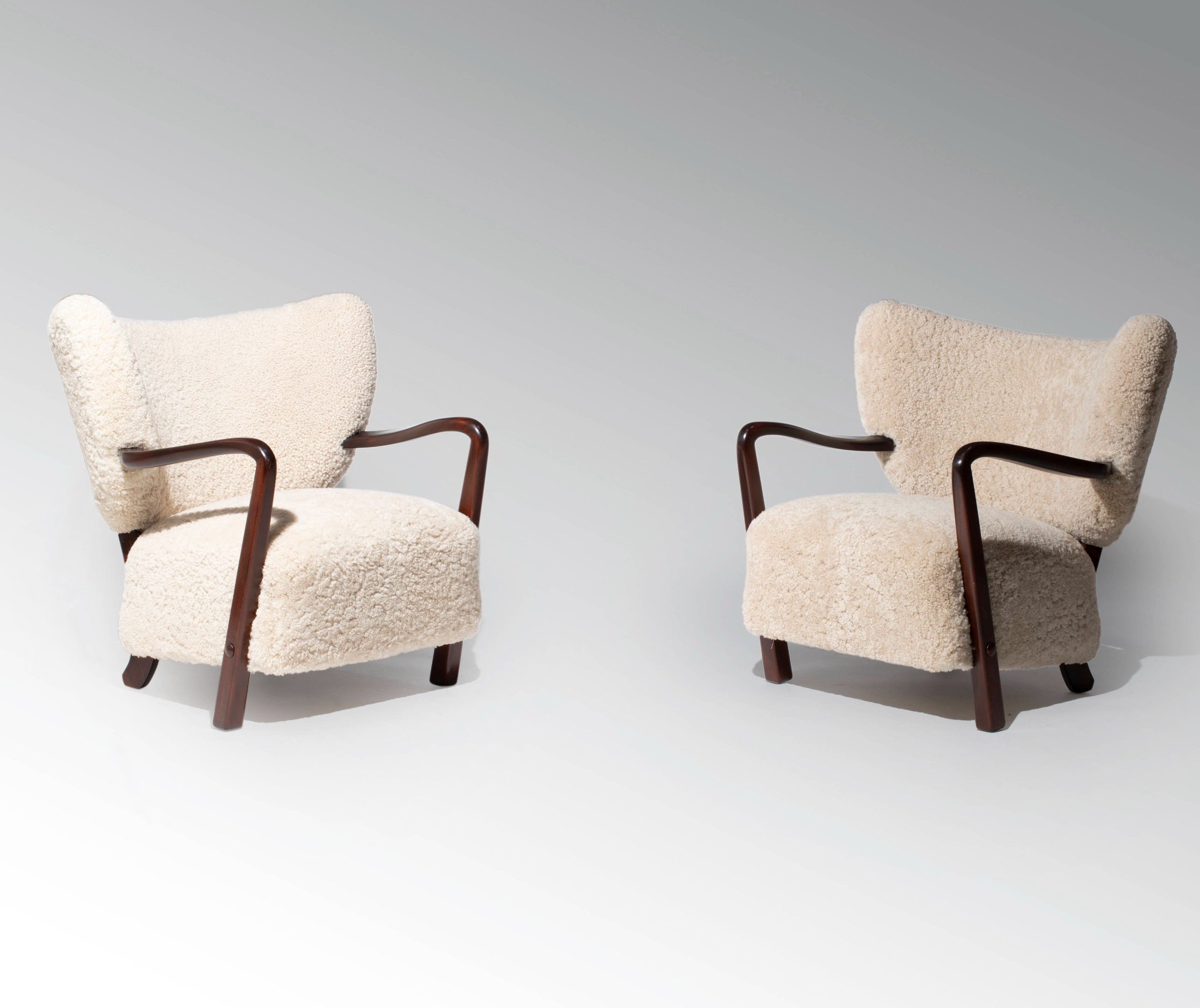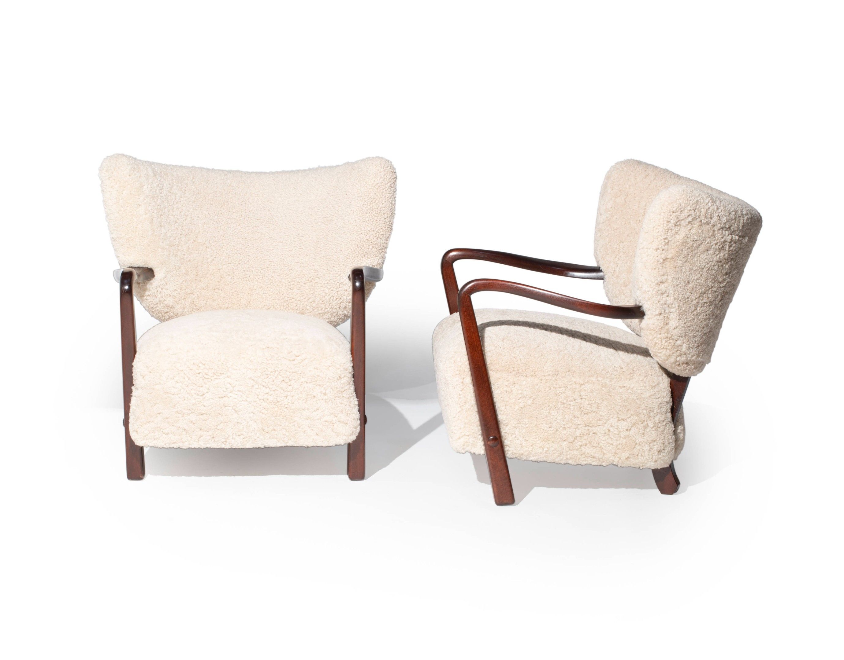A pair of mahogany and sheepskin armchairs by Viggo Boesen for Hos Wulff - 1930