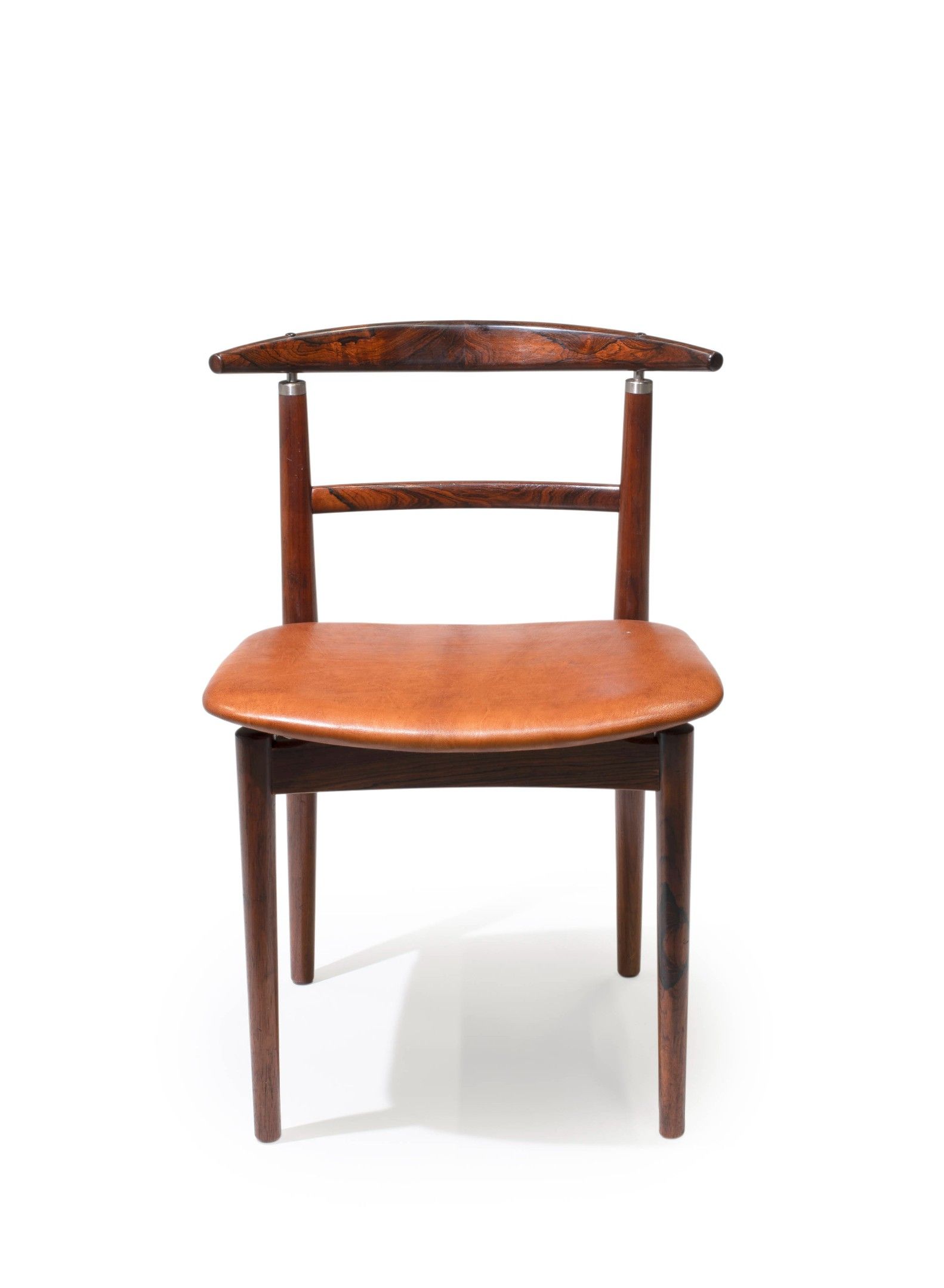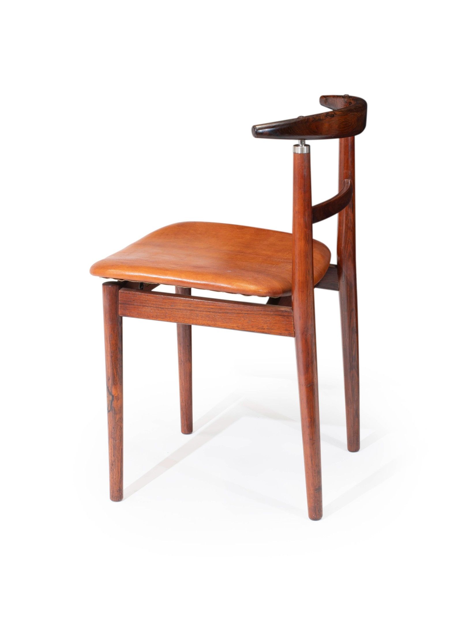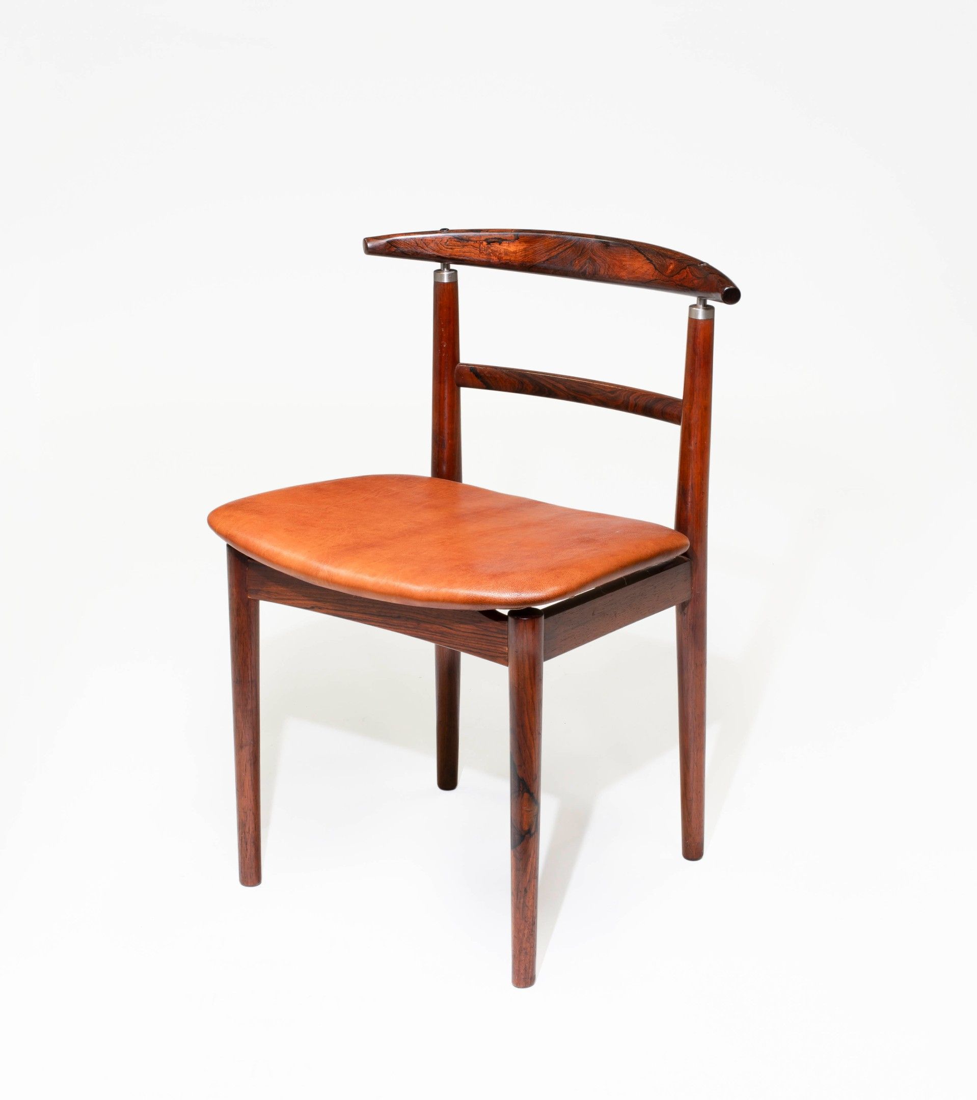 A set of twelve rosewood, cognac leather and steel mod. 465 chairs by Helge Sibast for Sibast Møbler - 1962