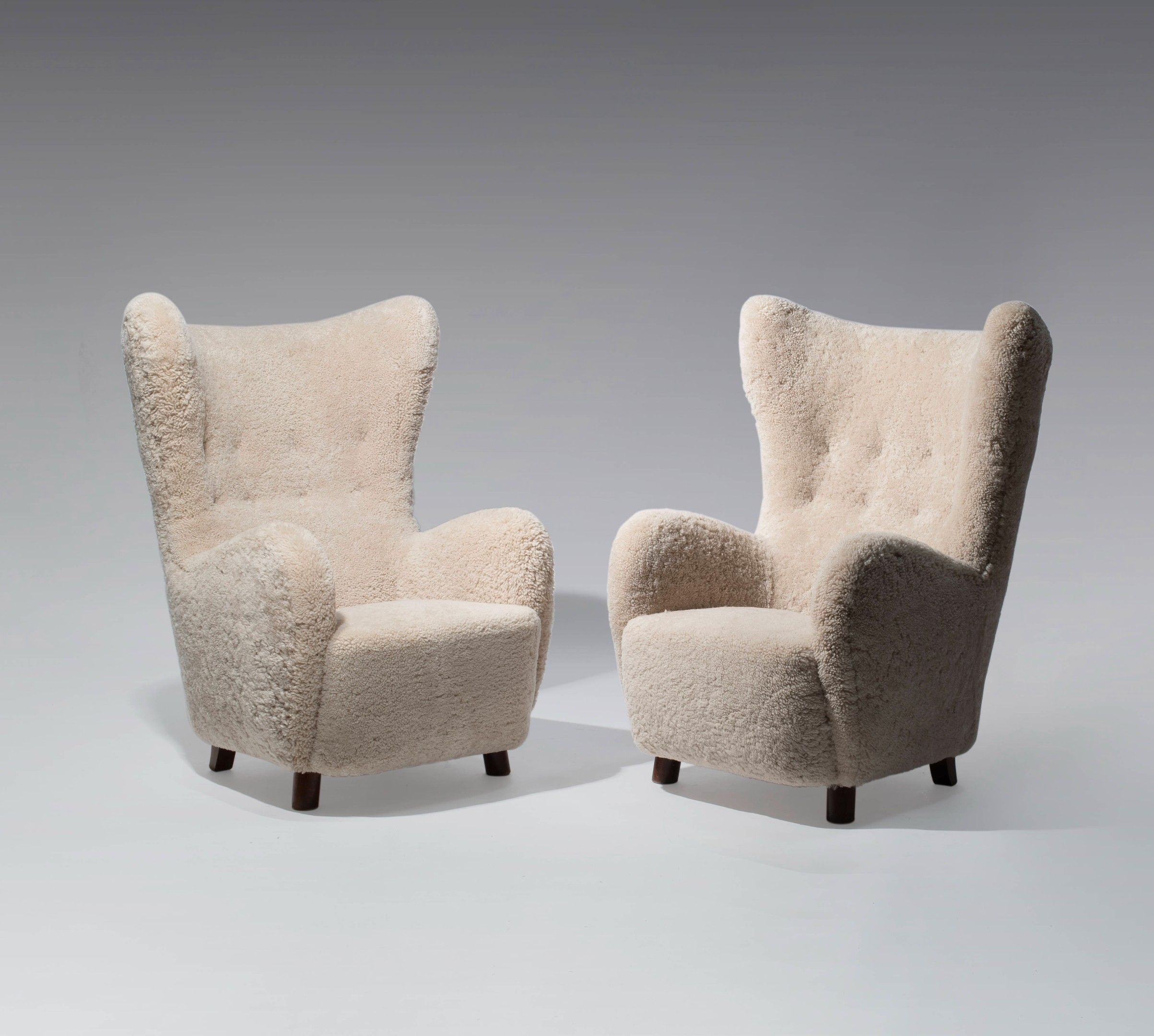 Premium Mogens LASSEN Pair of high-backed armchairs known as "Wing C…