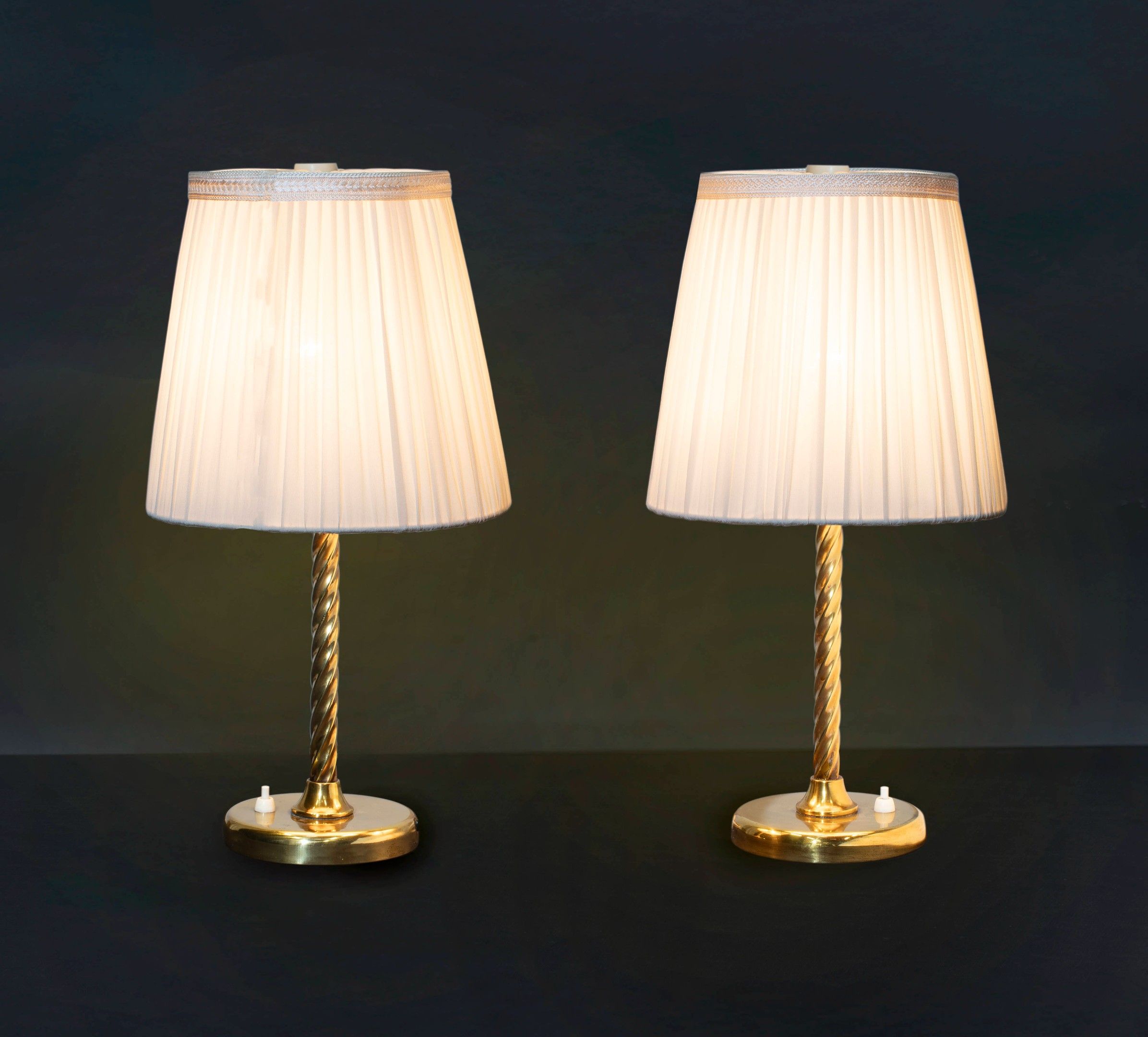 A pair of brass and silk table lamps by Gunilla Jung for Stockmann Orno - circa 1940