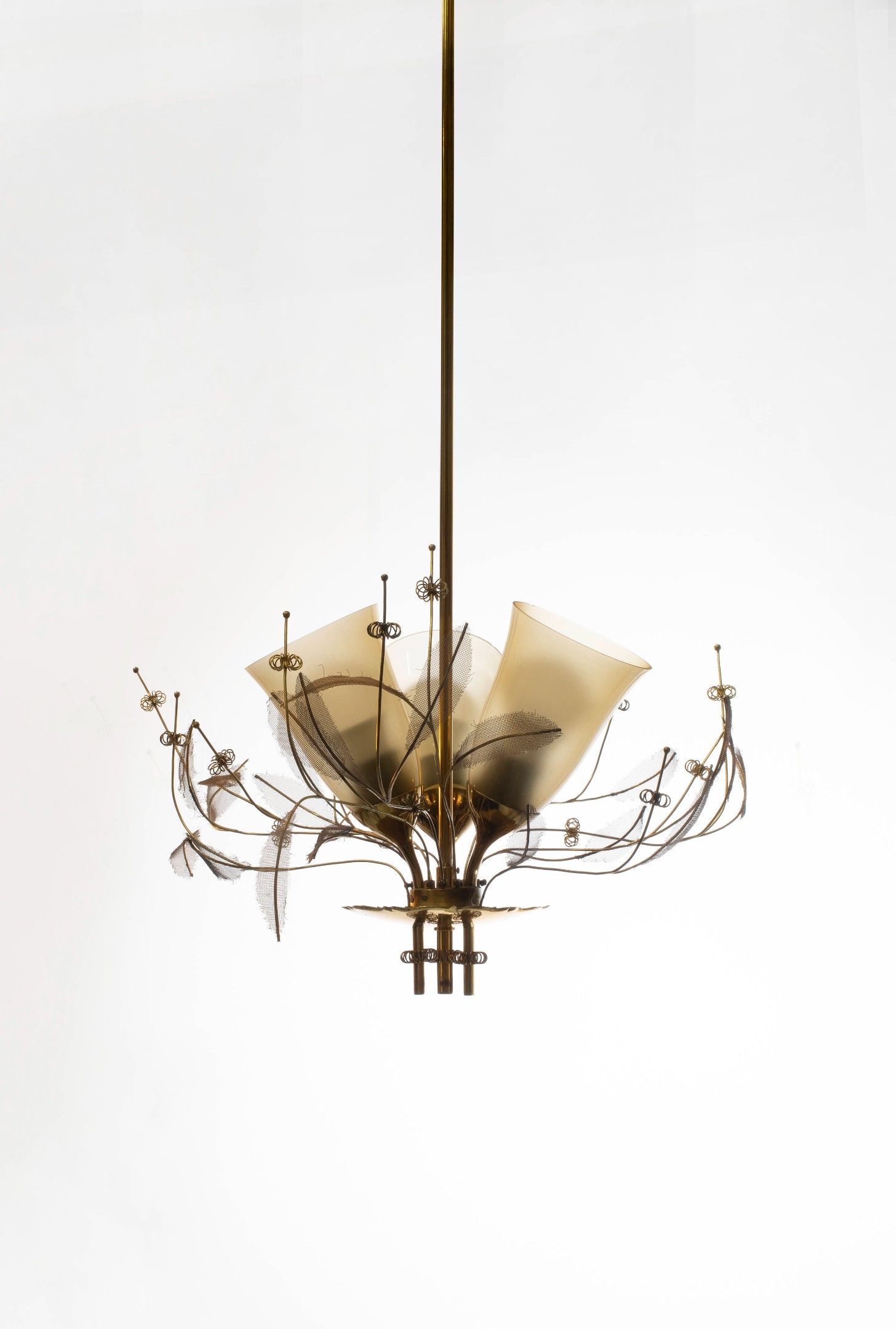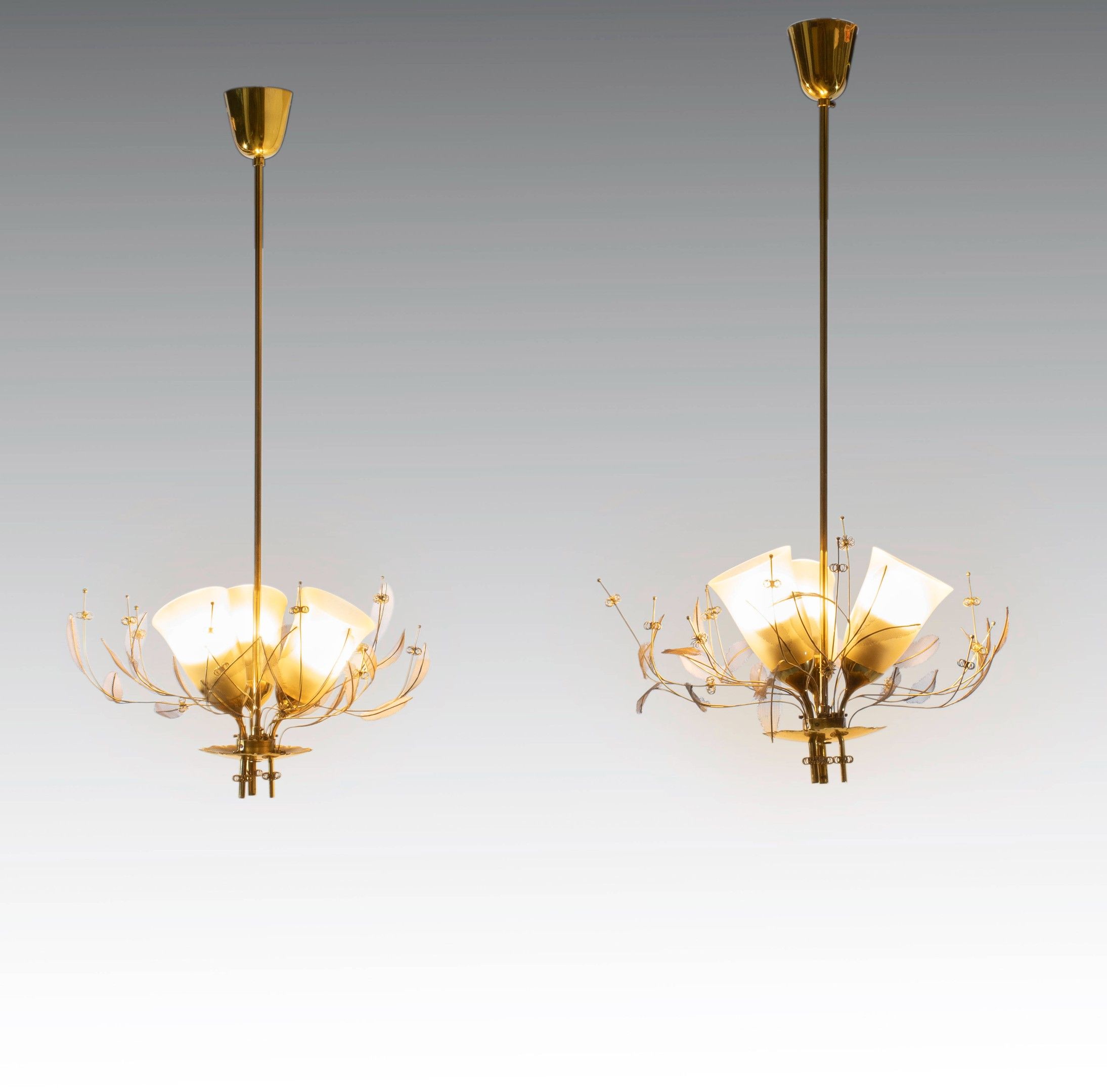 Premium Paavo TYNELL Pair of hanging lamps mod. 9029/3 "Bridal Bouqu…