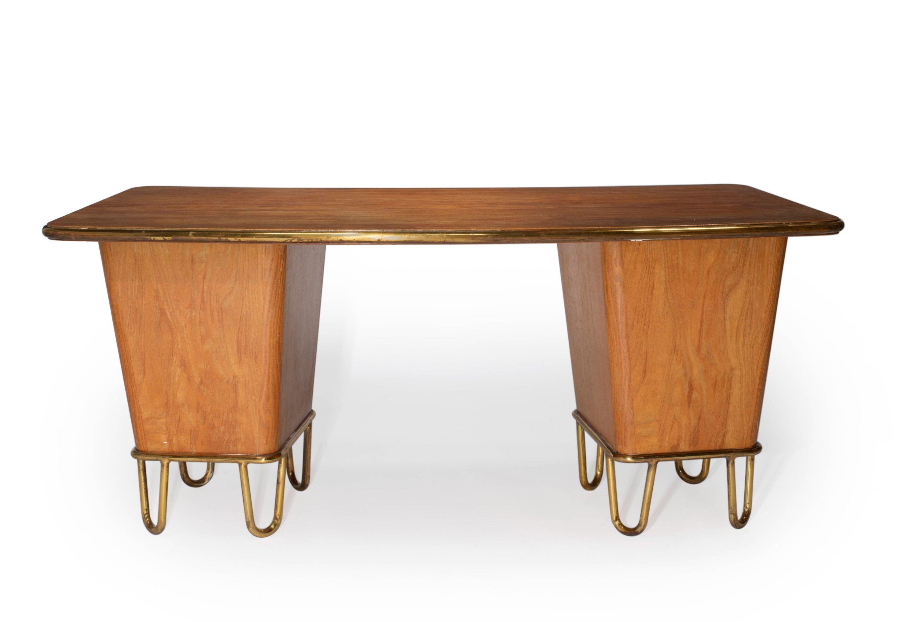 A brass and ash wood desk by Veljekset Lampila - circa 1945