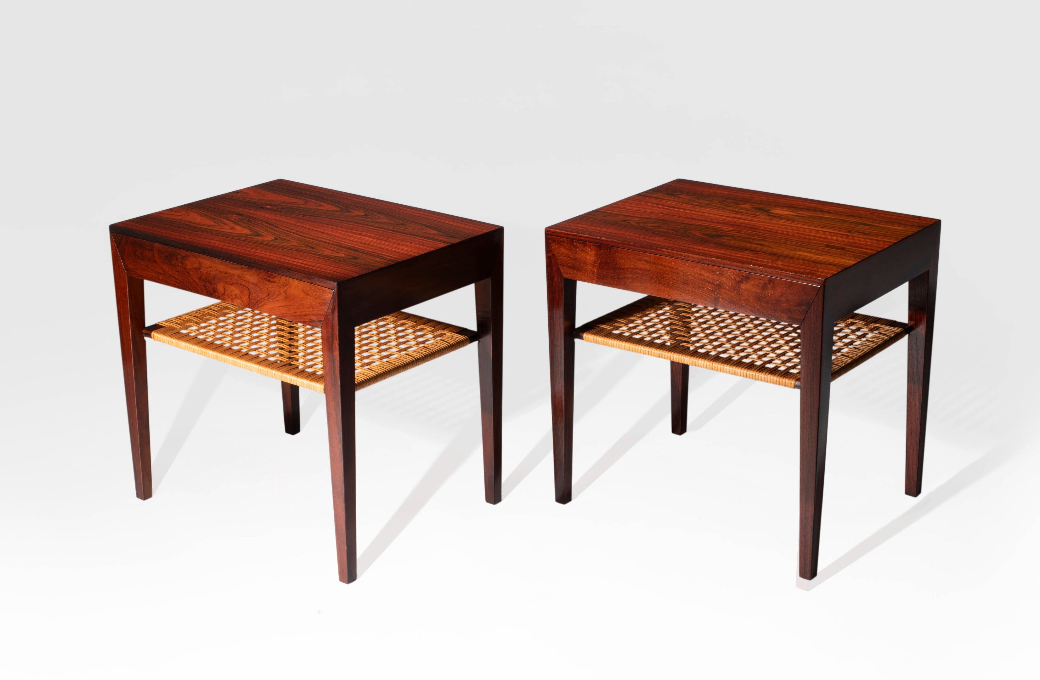 A pair of rosewood and cane nightstands by Severin Hansen for Haslev Møbelsnedkeri A/S - 1955