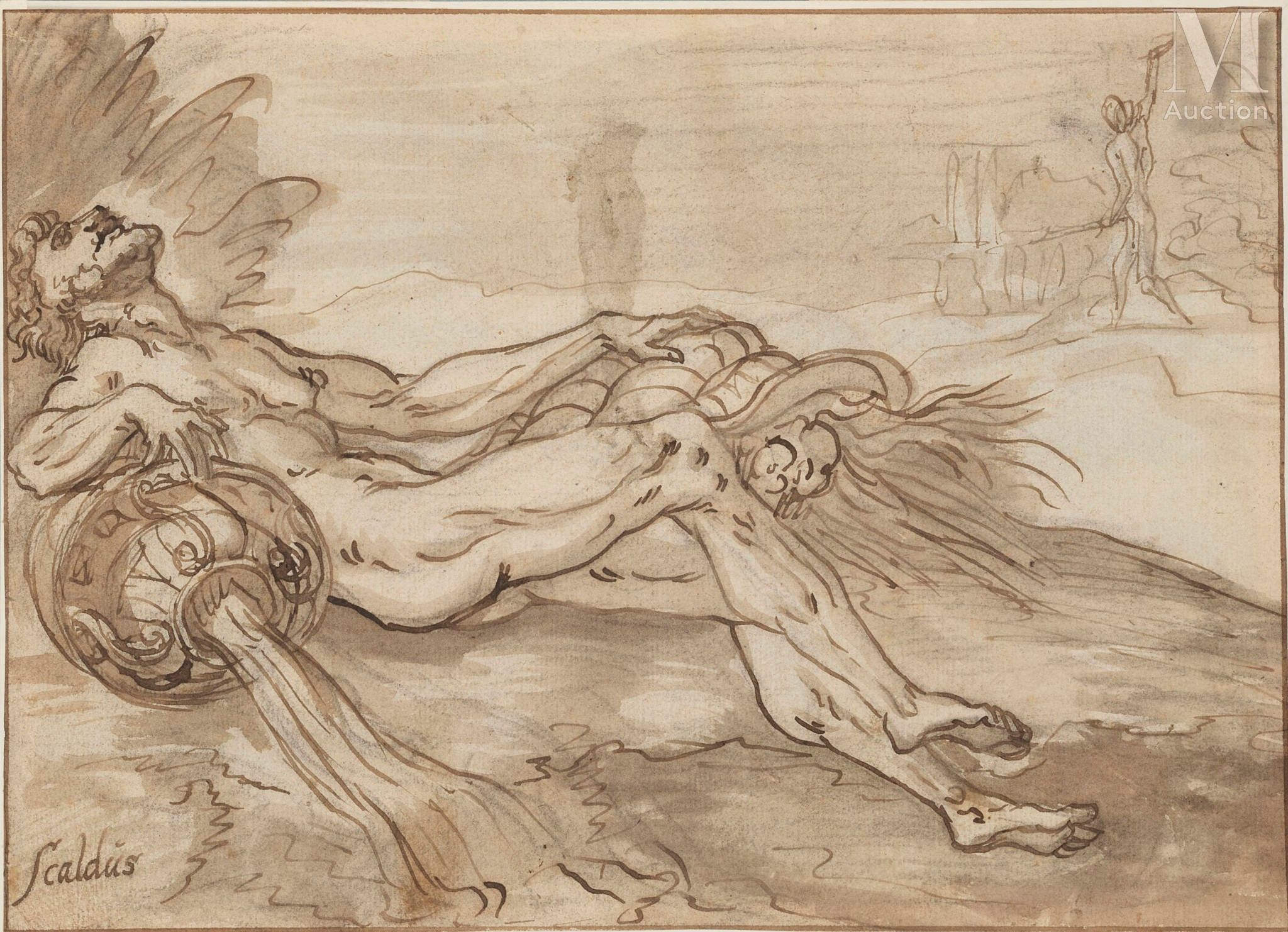 Recto: River God Scaldus: the Scheldt / Verso: Study of a cradle (red chalk)