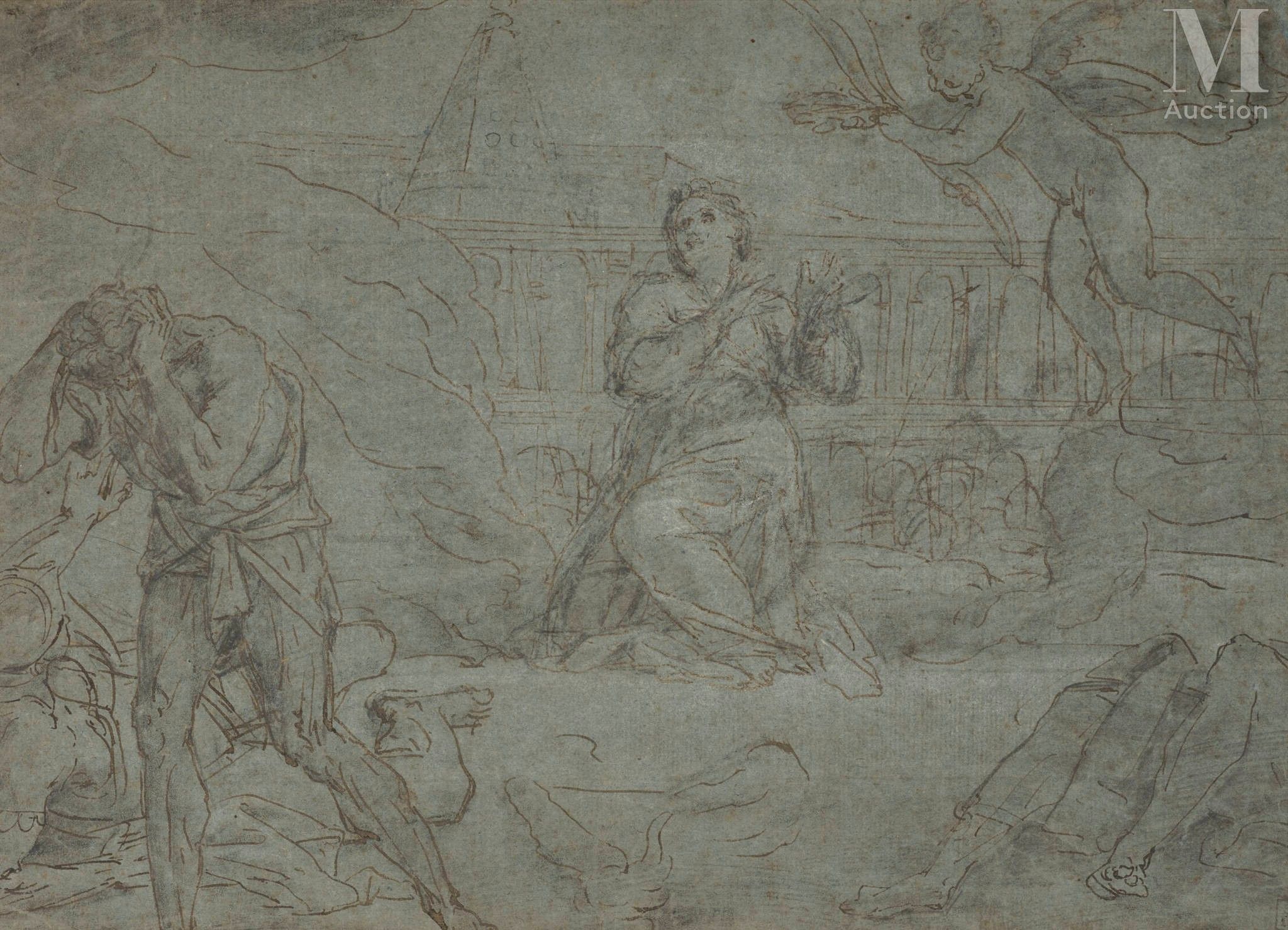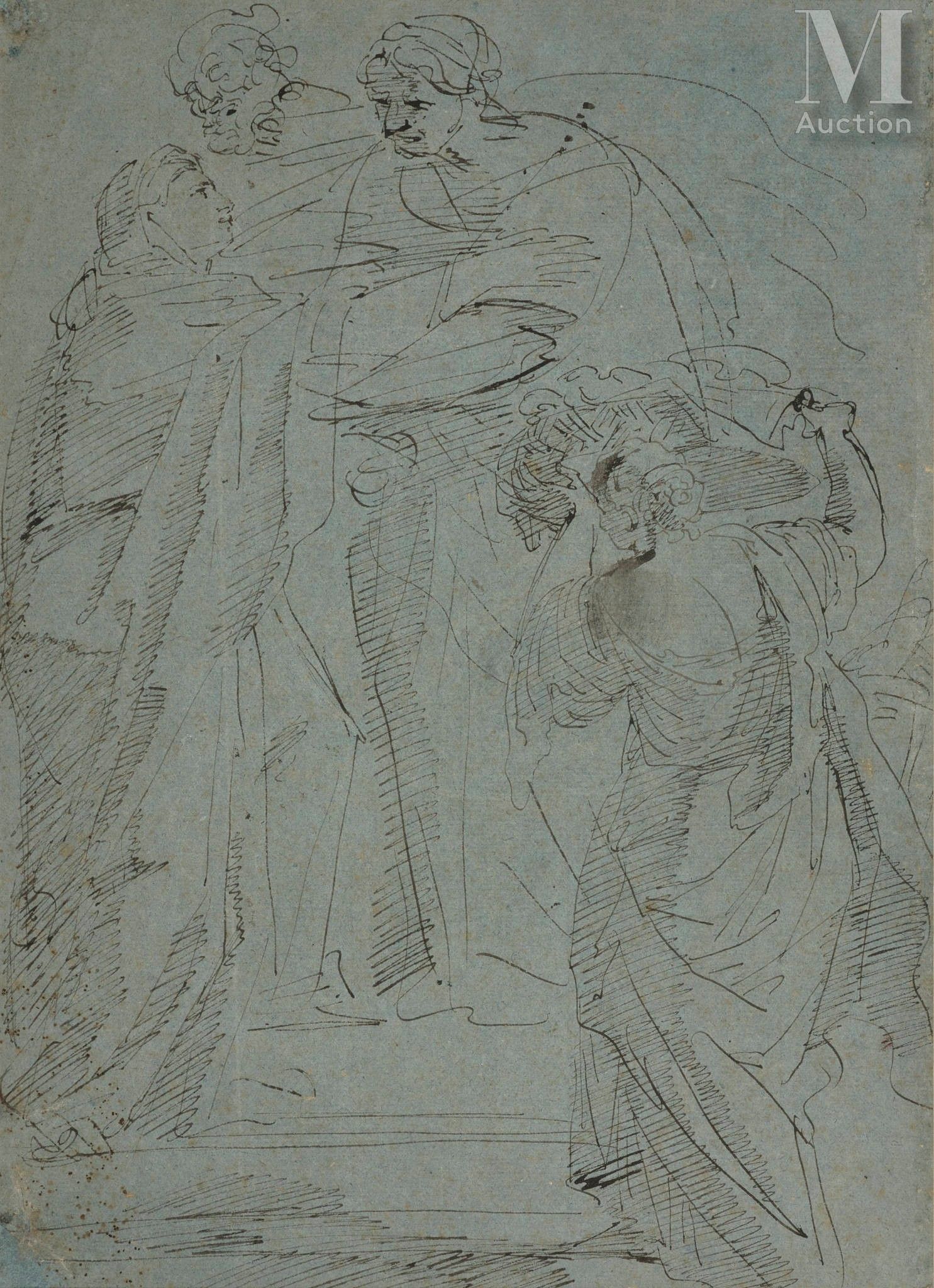 Premium 17th century Roman school Study sheet recto-verso: Saint rec…