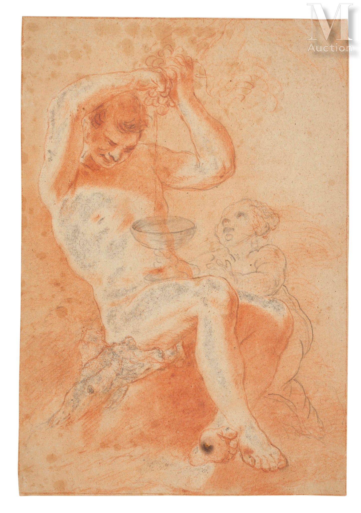 Sanguine, stump and black pencil, traces of oxidised white highlights