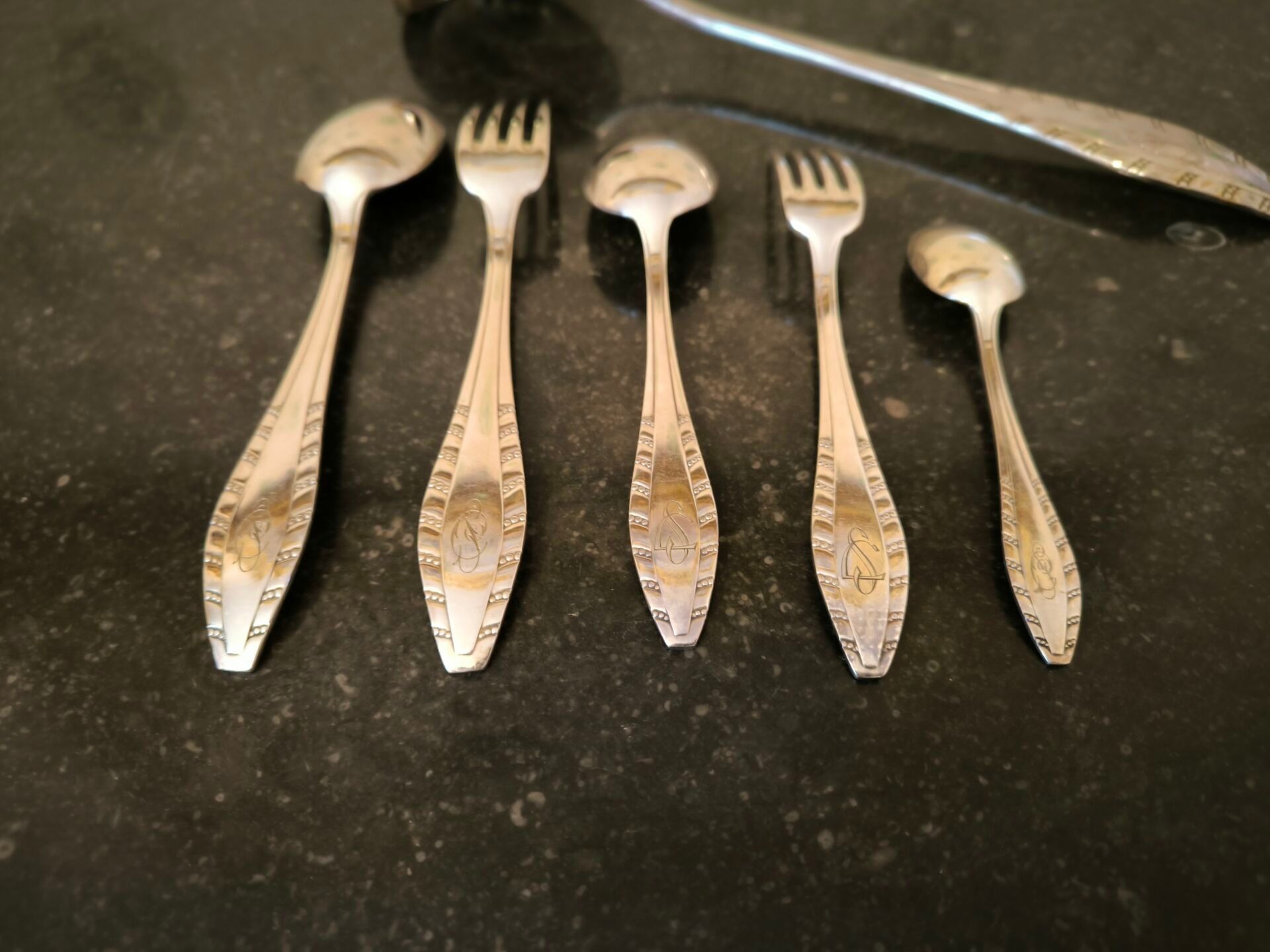 . Set of silver-plated cutlery, numbered "CS": 12 place sett…