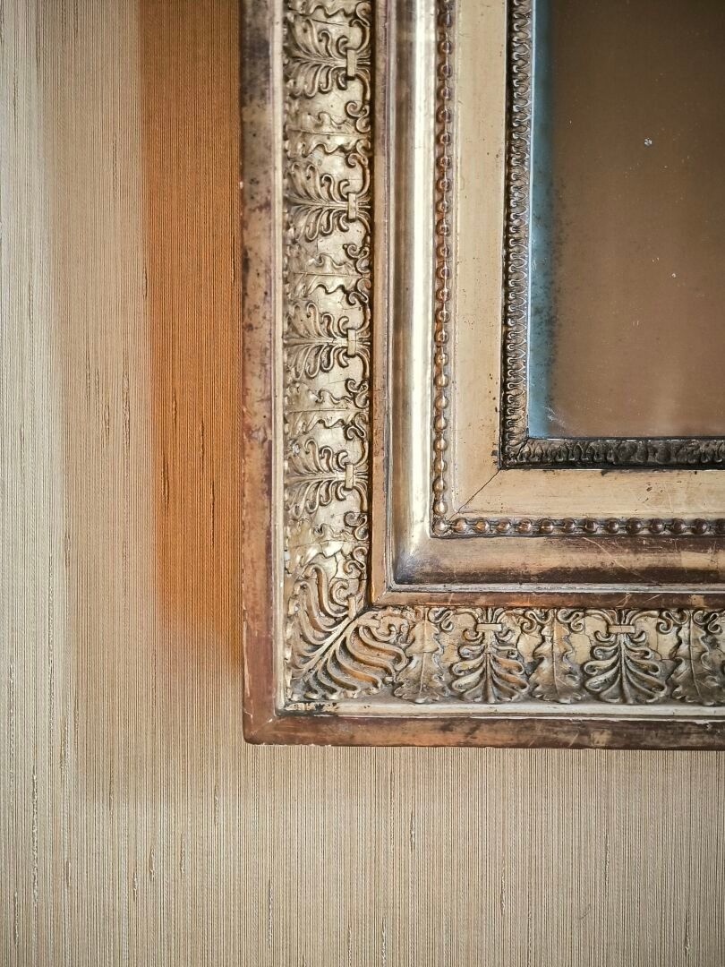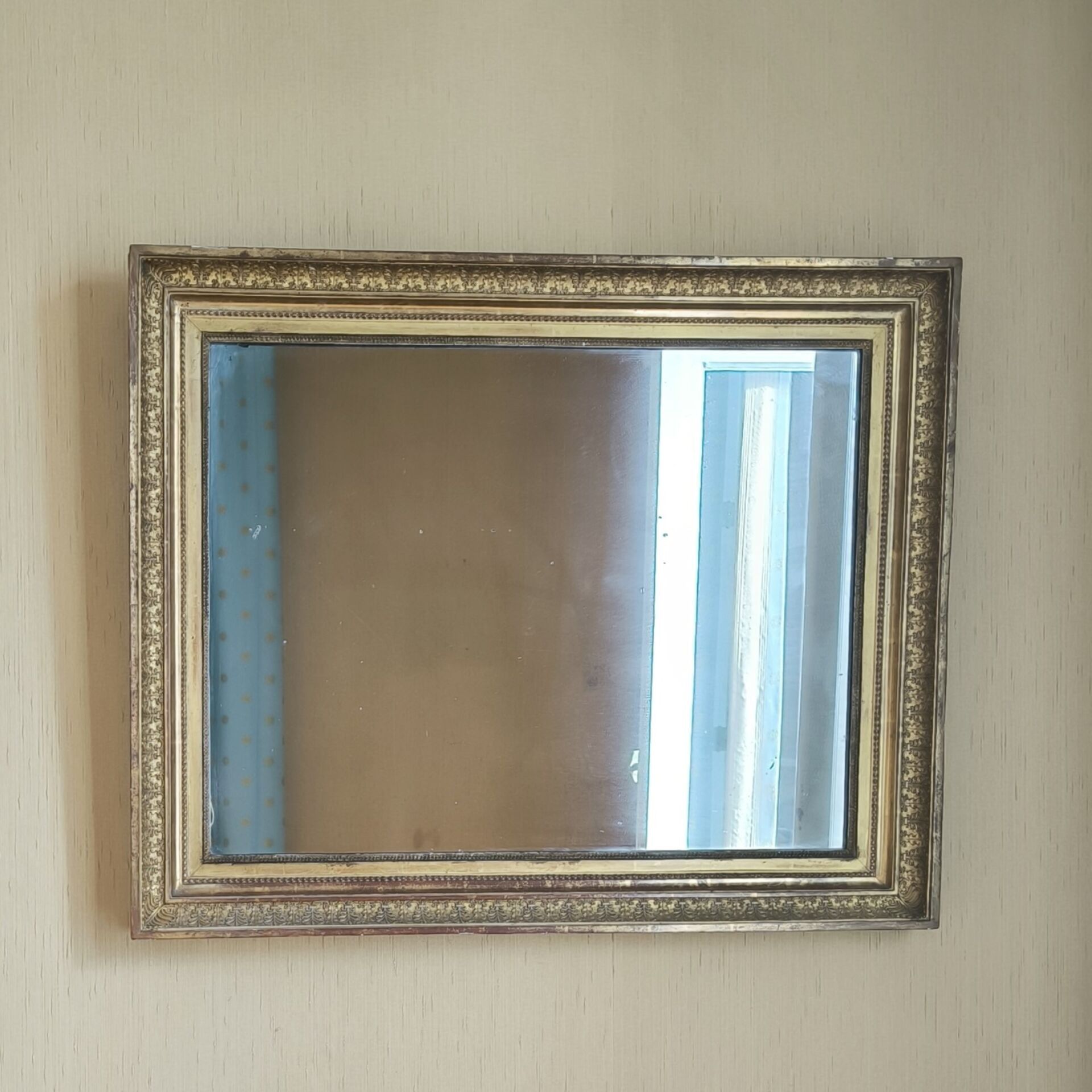 An early 19th century gilded wood mirror with palmettes (minor damage and missing). 66 x 81 cm