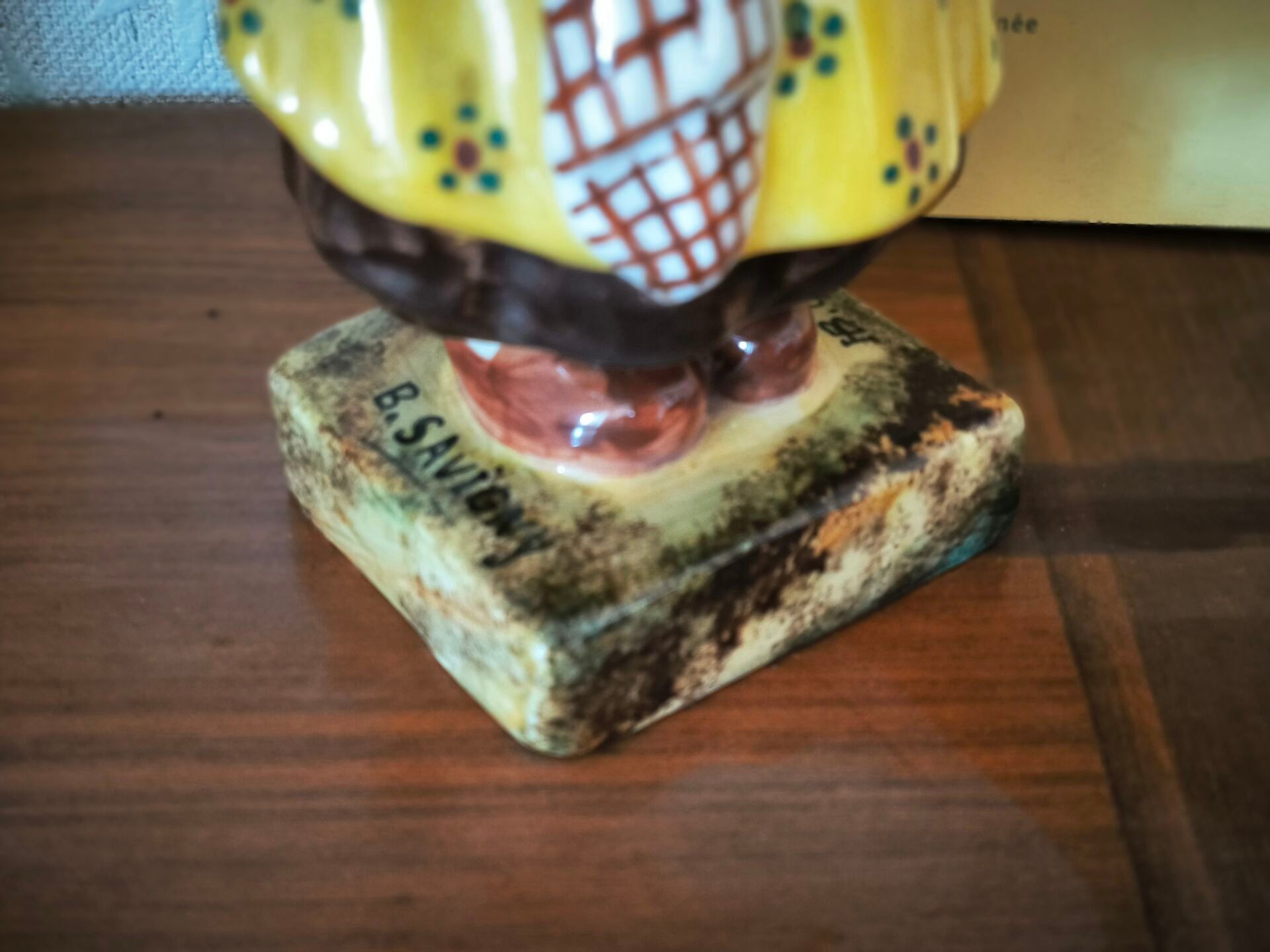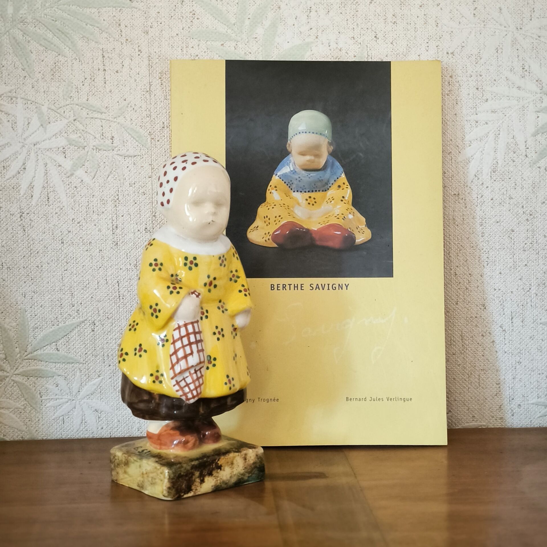 QUIMPER - B. SAVIGNY. Earthenware baby, signed on the ground. Height 32 cm. A book is attached