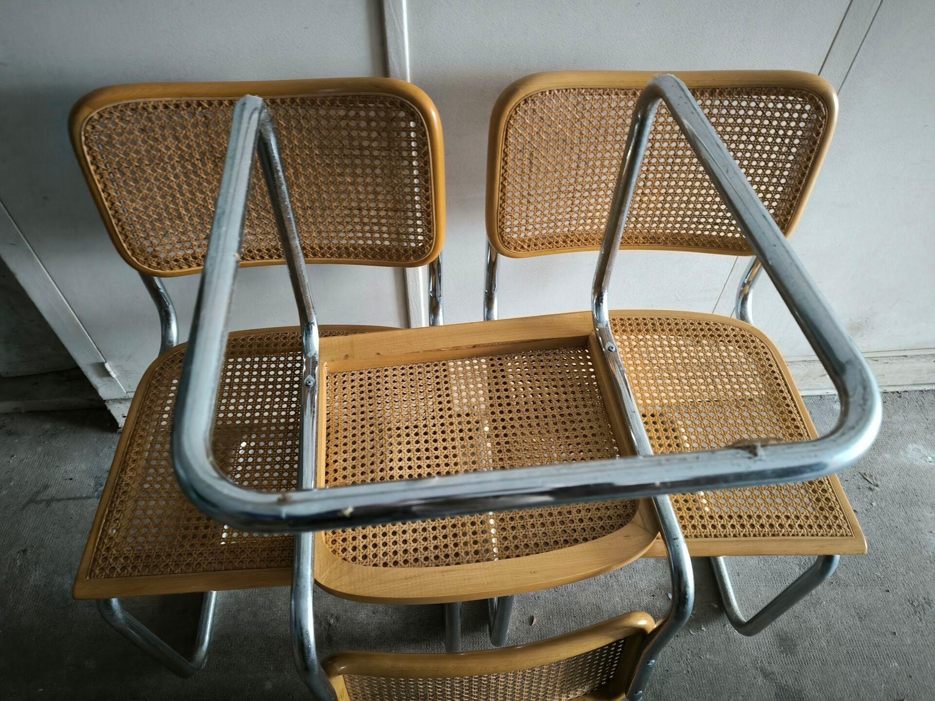 Marcel BREUER (in the taste of). Suite of 3 caned and chromed chairs. Height 83 cm