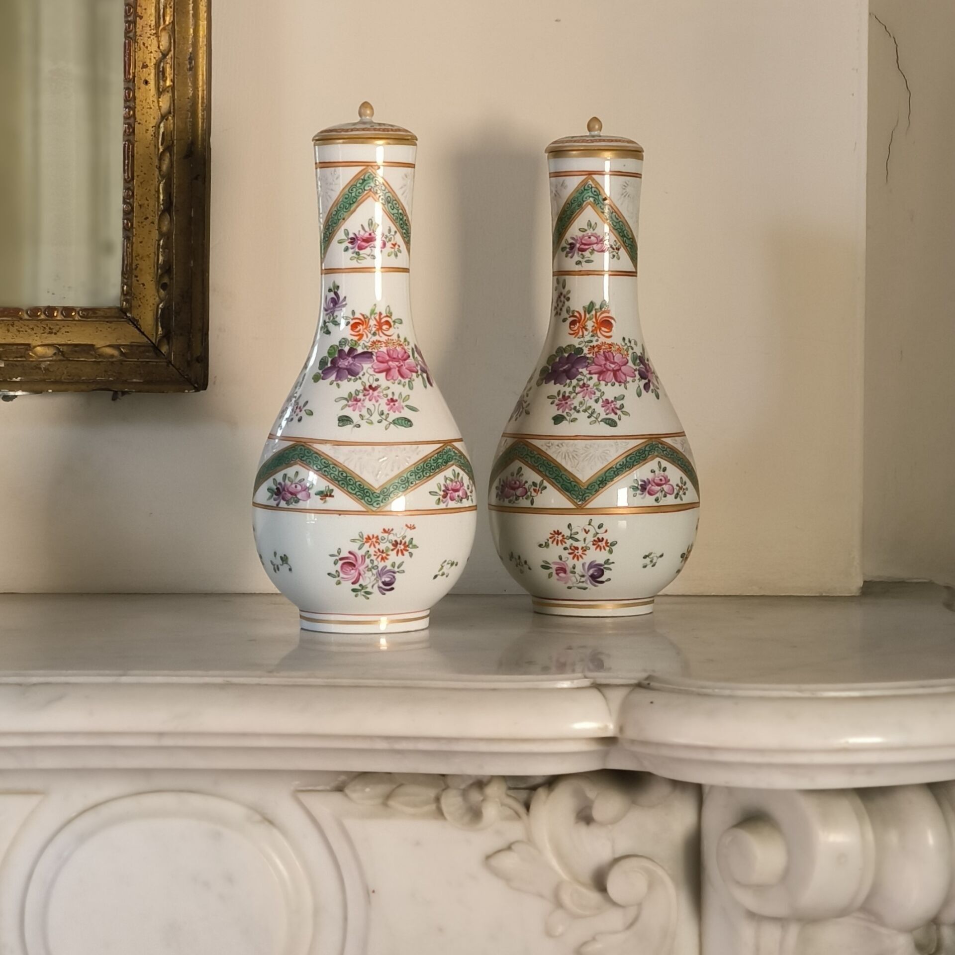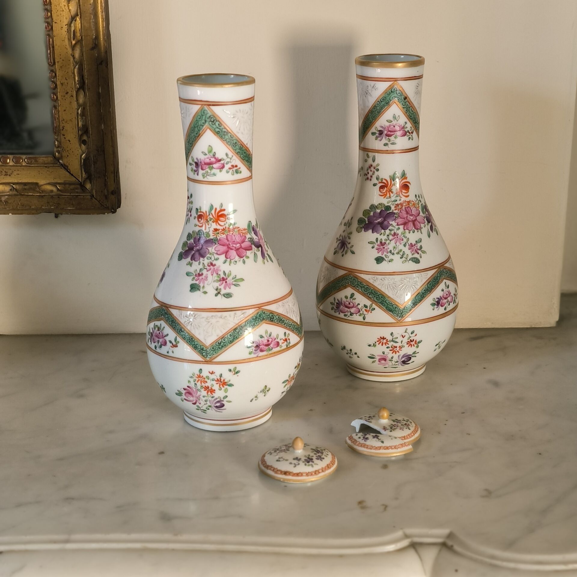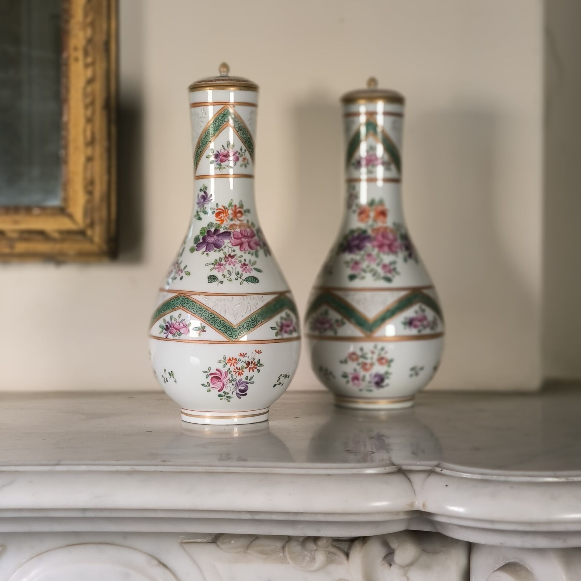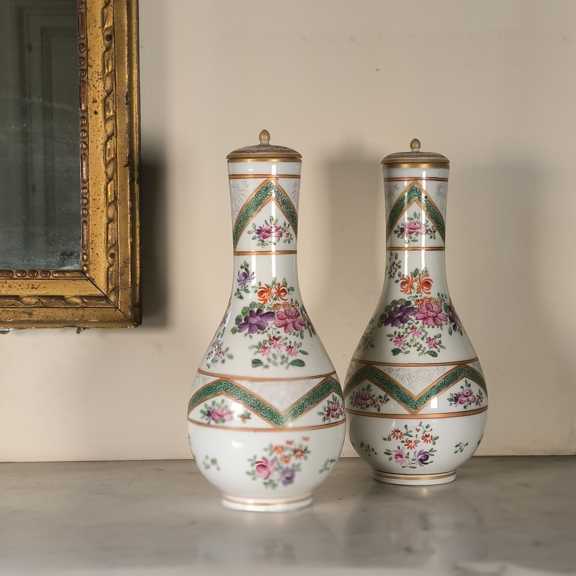 PARIS - SAMSON XIXth. Pair of covered bottles, Compagnie des Indes style. (accident to one of the lids) Height 23 cm