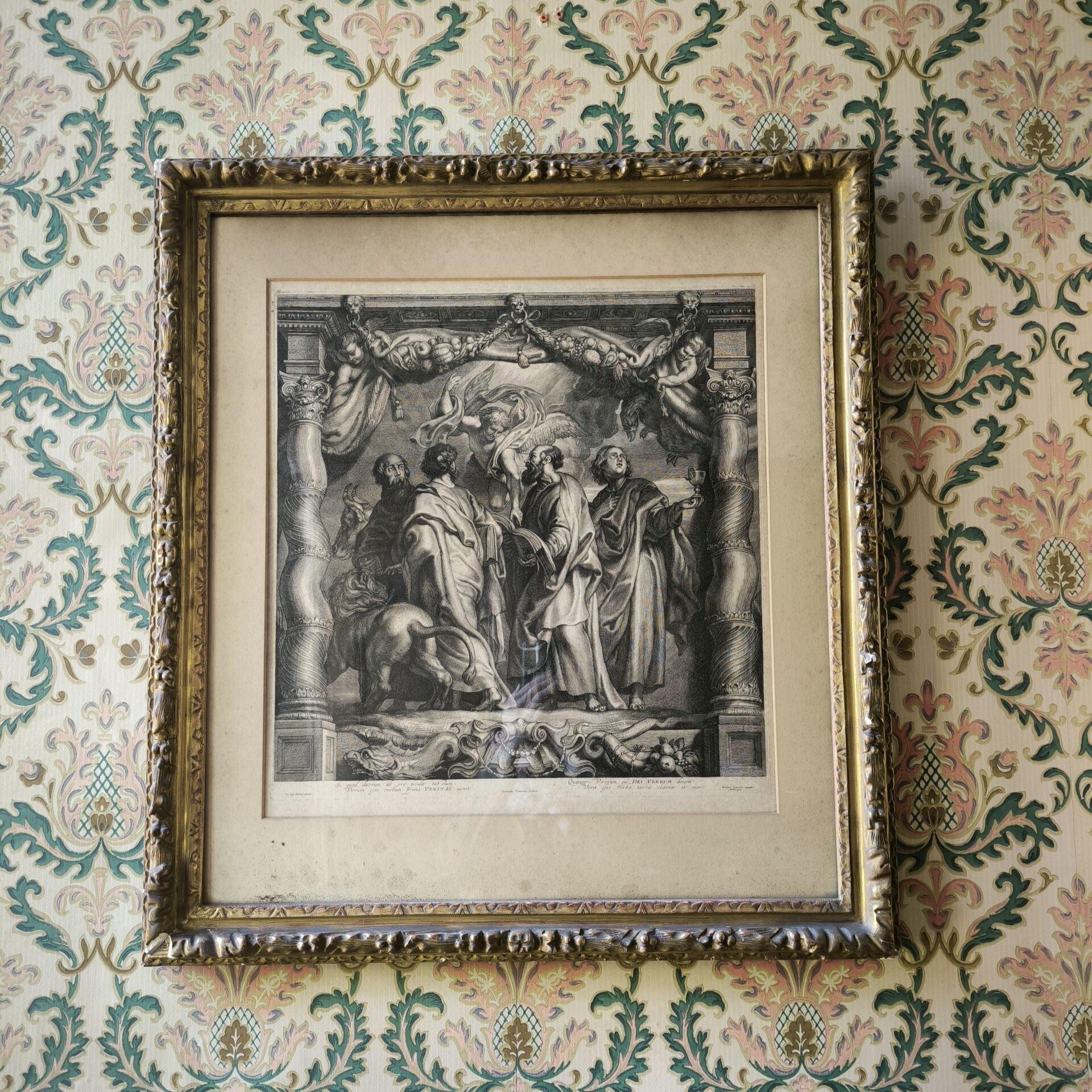 RUBENS (after). The Evangelists. Engraving. 52 x 49 cm (view). Gilt frame (small missing parts)