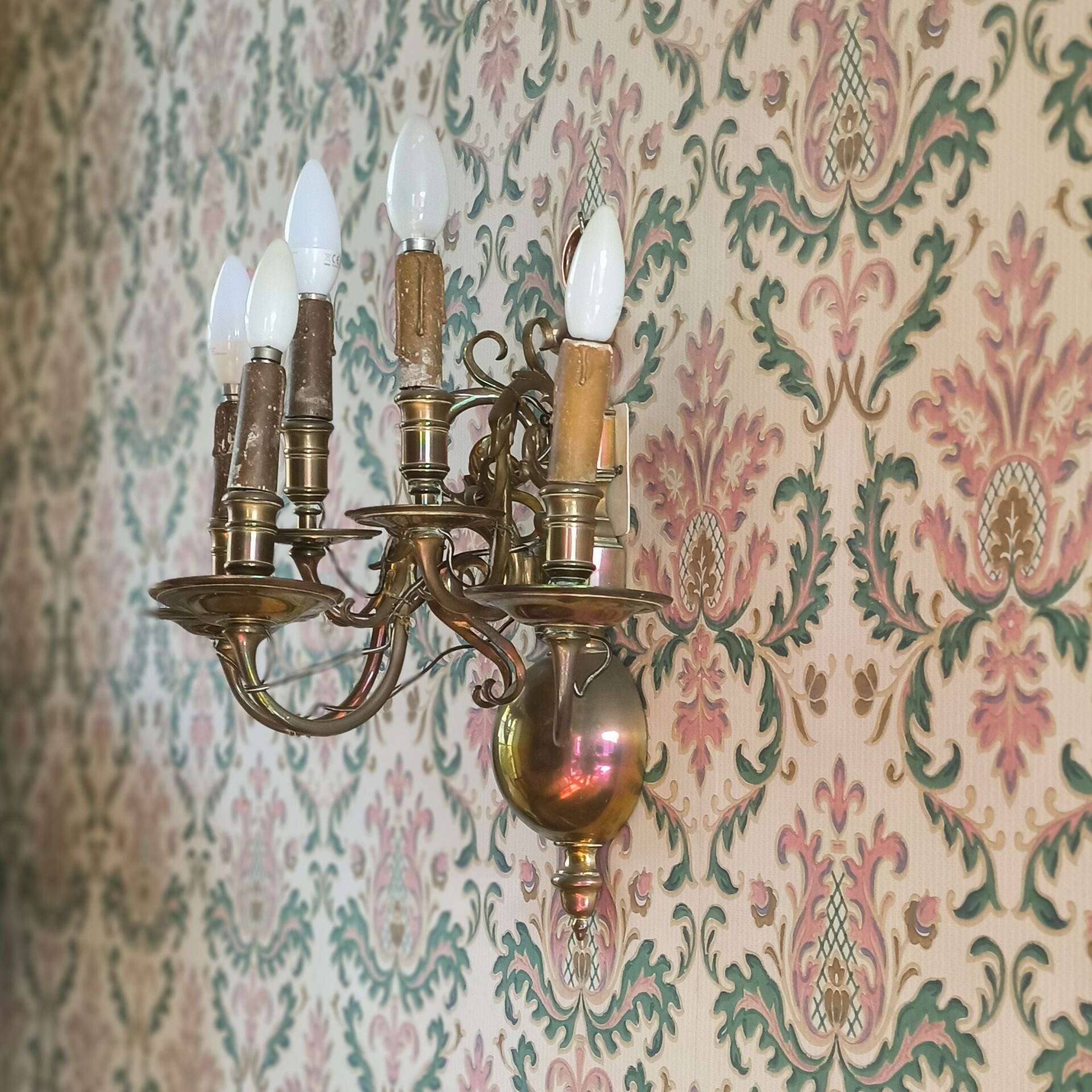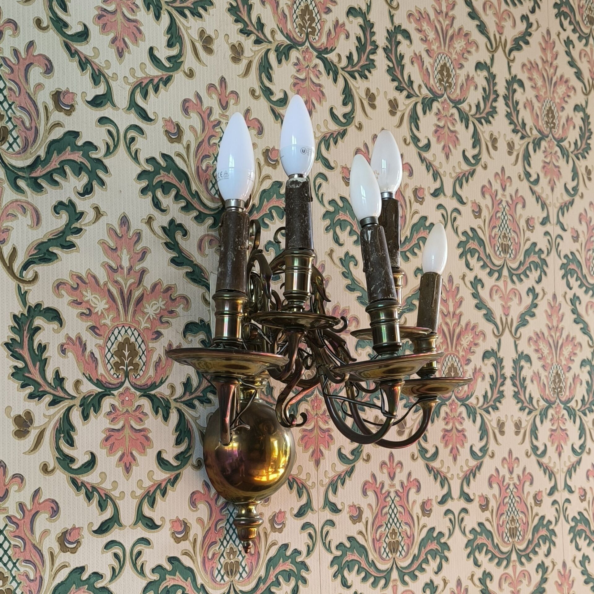 Pair of Dutch-style 5-light brass sconces (worn) 45 cm high,…