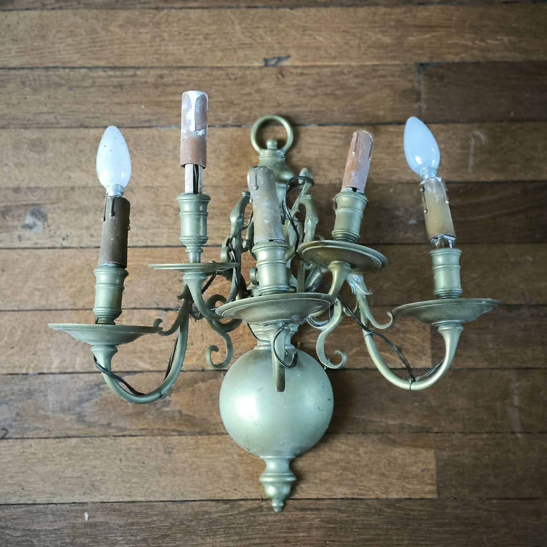 Pair of Dutch-style 5-light brass sconces (worn) 45 cm high, 45 cm long, 30 cm wide