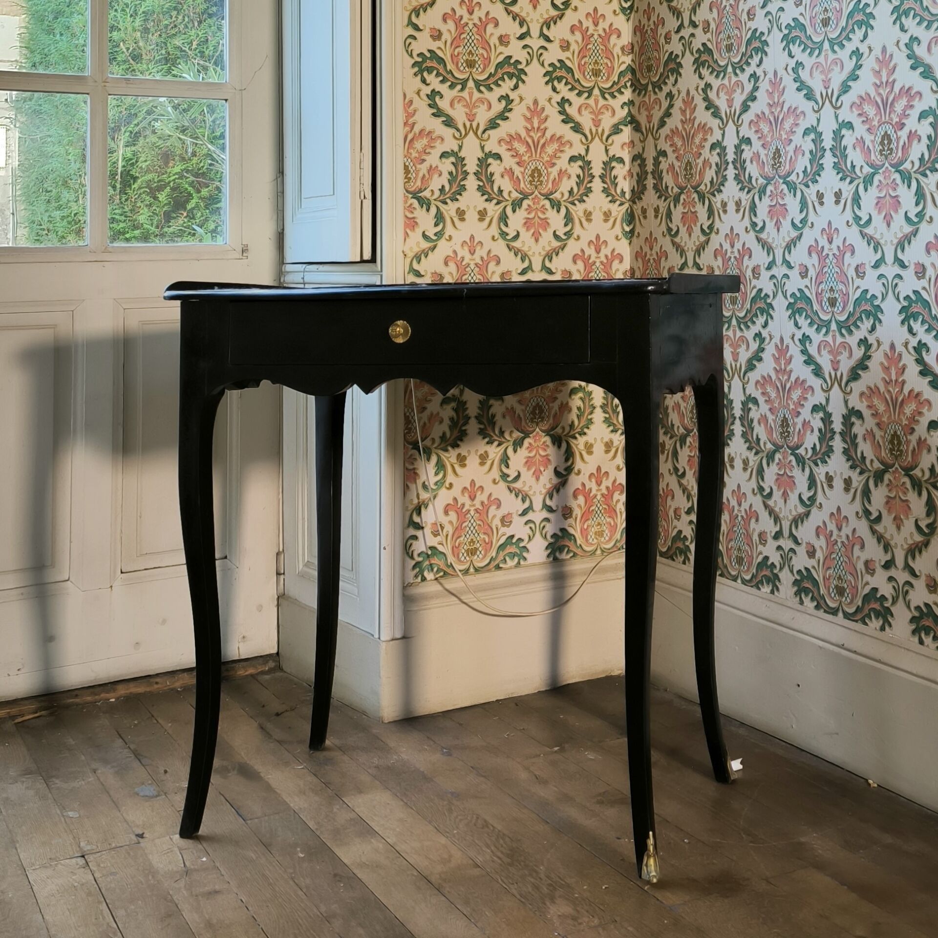 Small desk in blackened wood, one drawer in the belt, bronze…