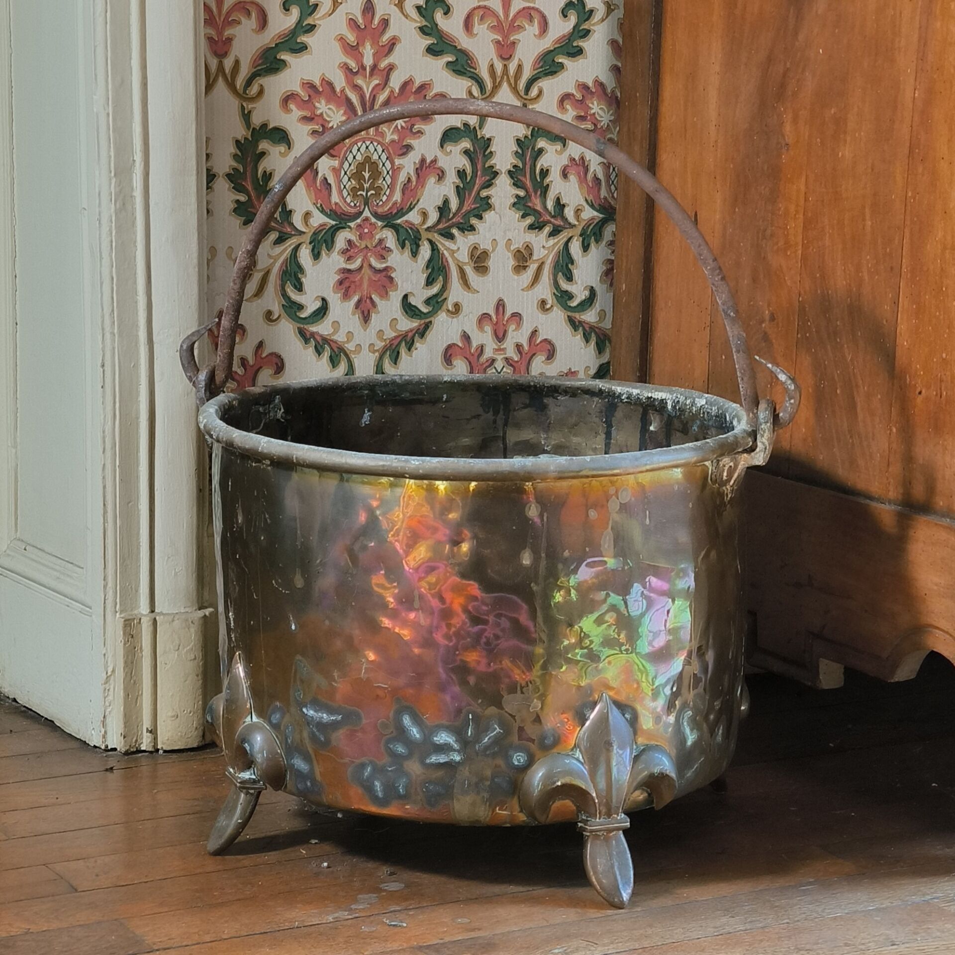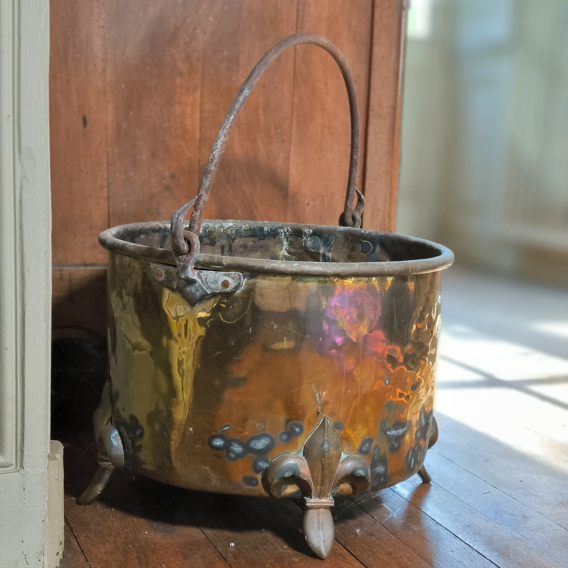 Brass basin with flower-shaped feet.