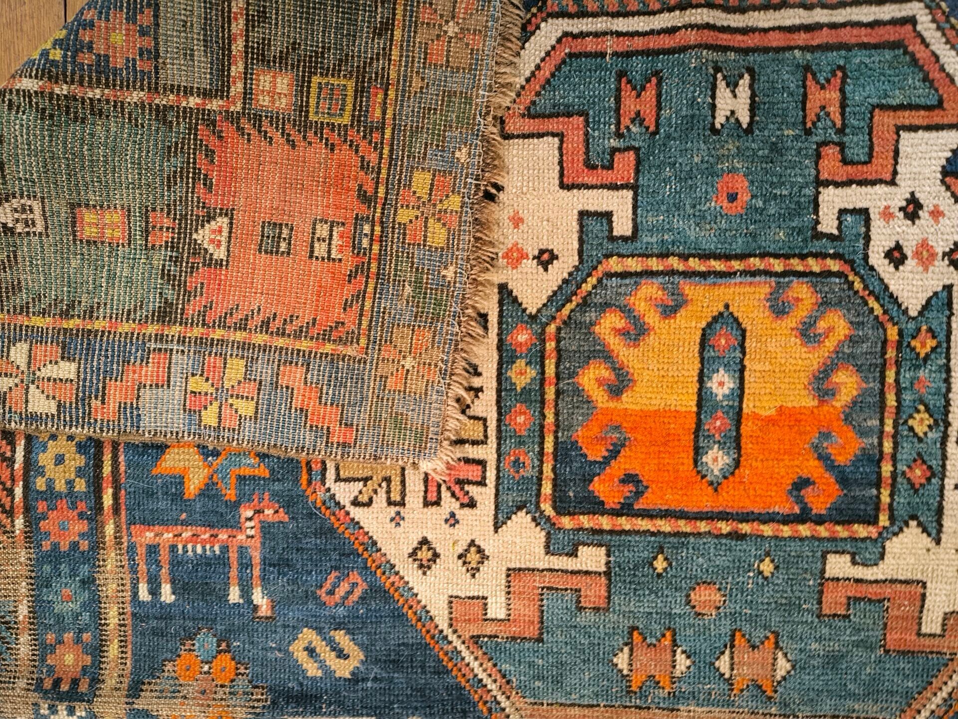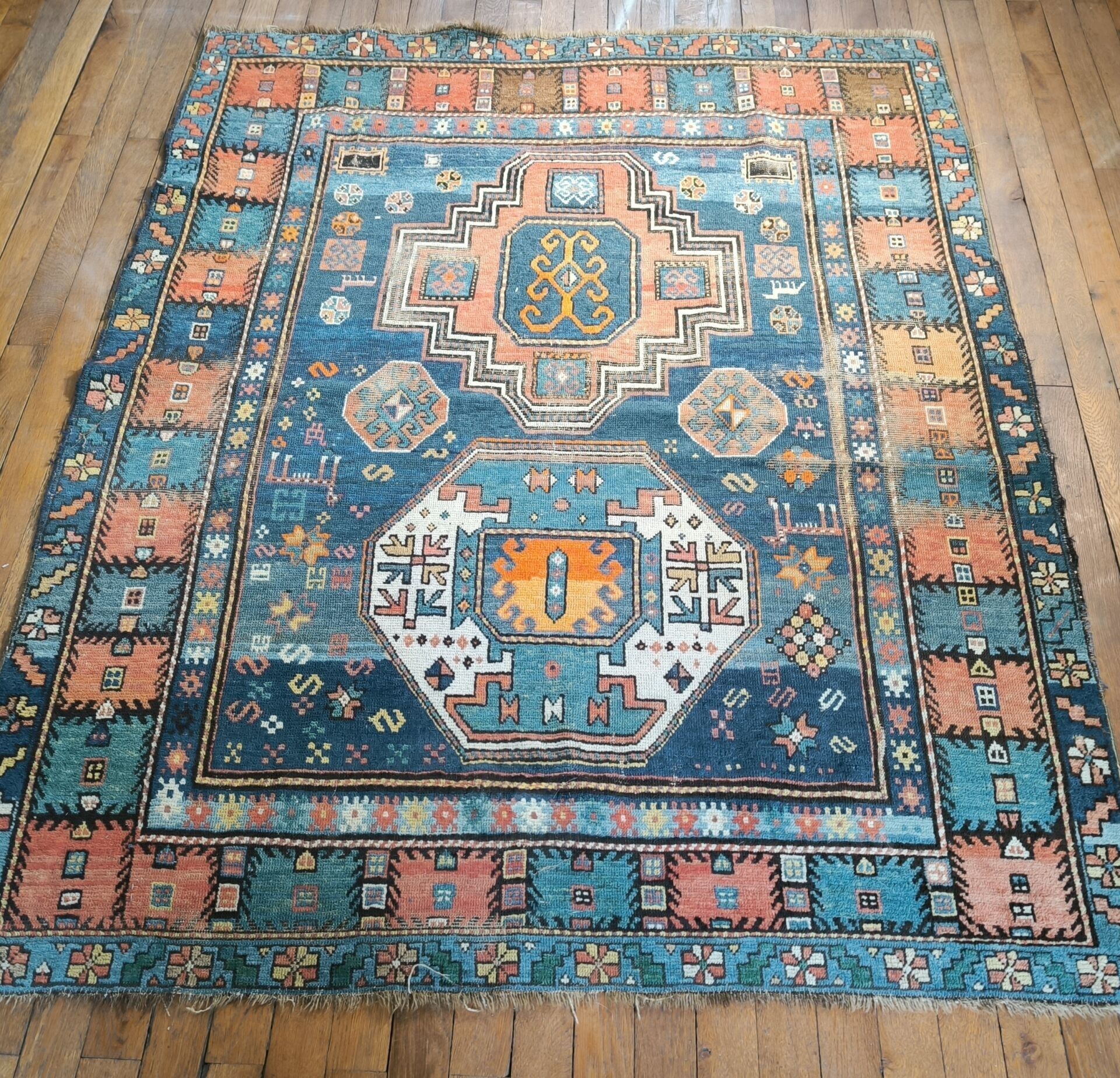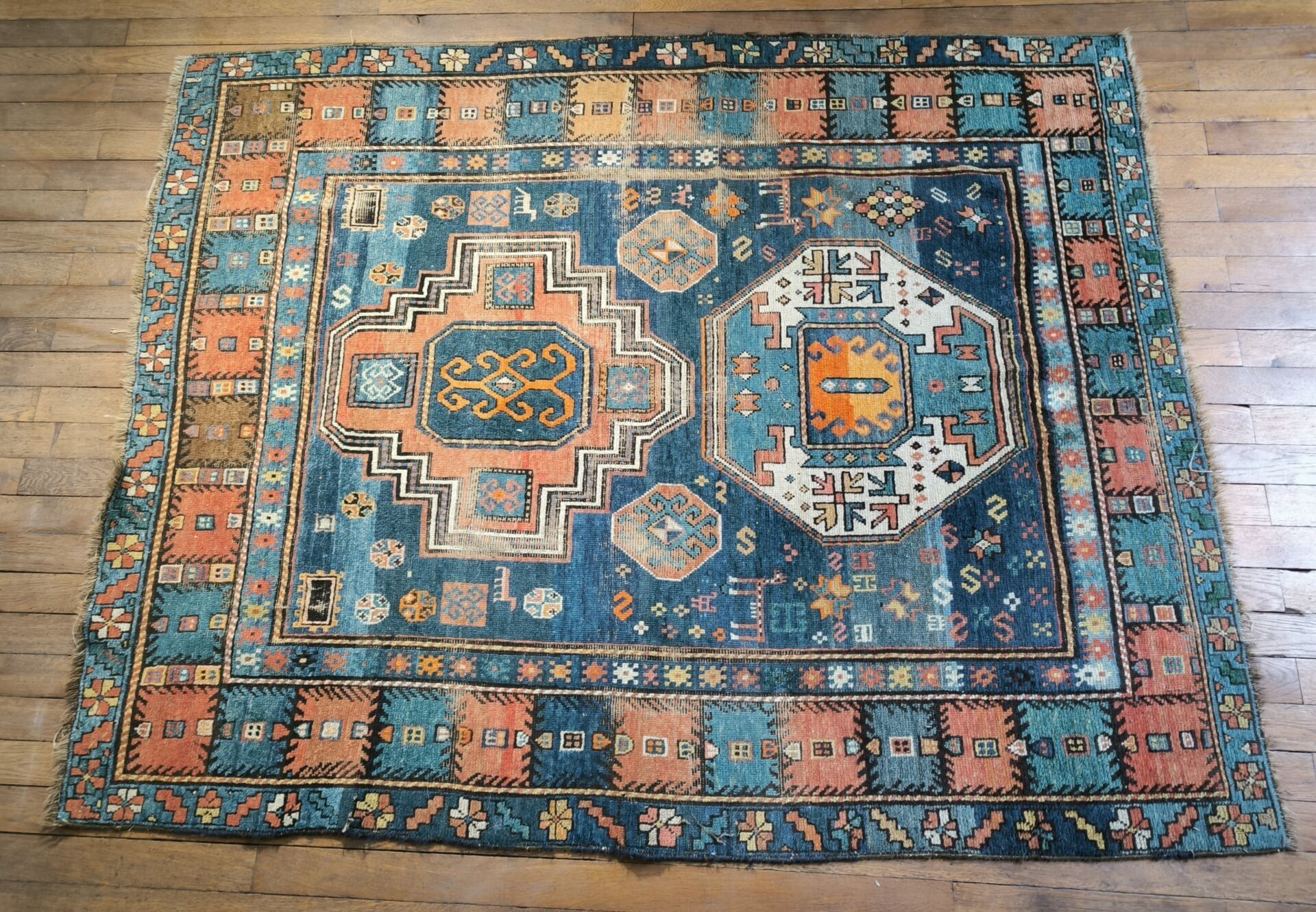 Carpet with two medallions on a blue background (minor wear) 190 x 104 cm