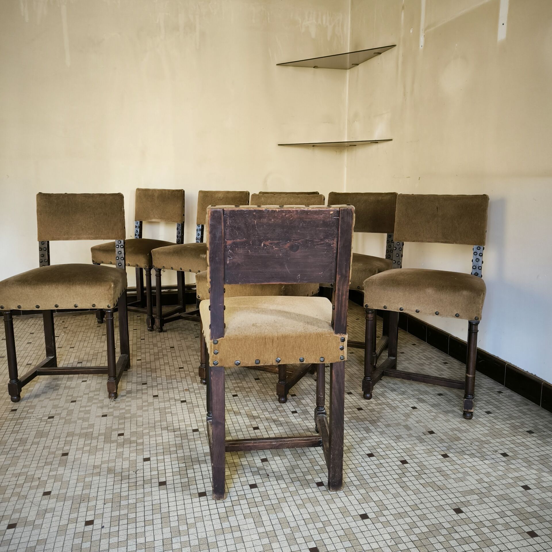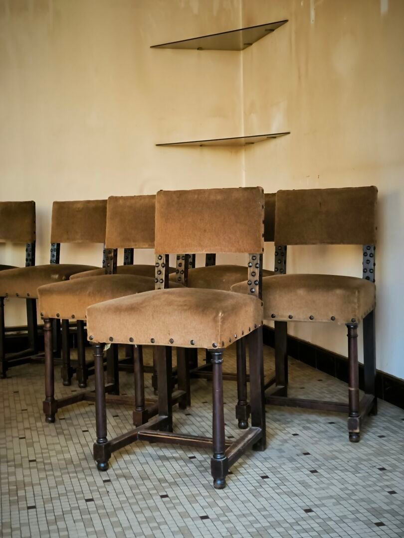 Suite of 8 small chairs, Louis XIII style (minor wear) Height 80 cm