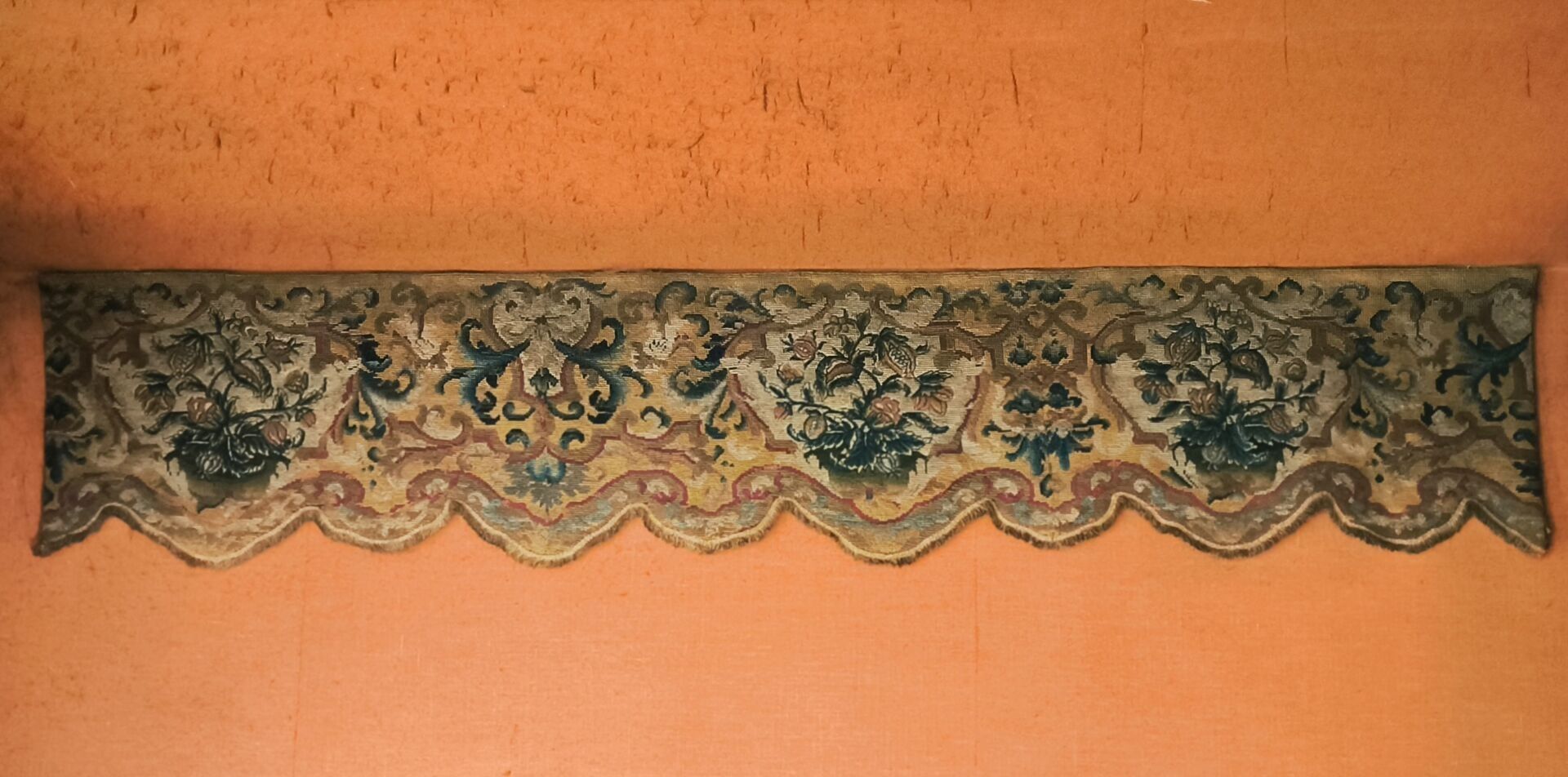 Valance decorated with a bouquet of flowers. Stitch tapestry. 19th century. 43 x 213cm