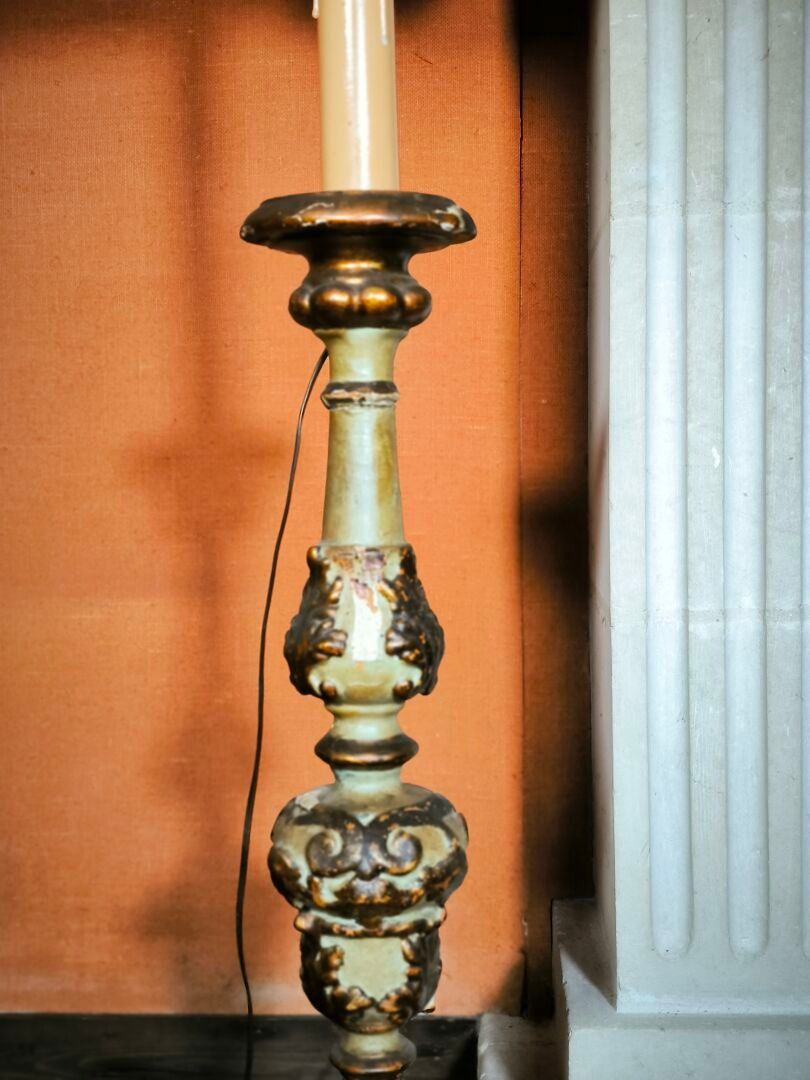 Pique-cierge in repainted and gilded wood, 18th C.