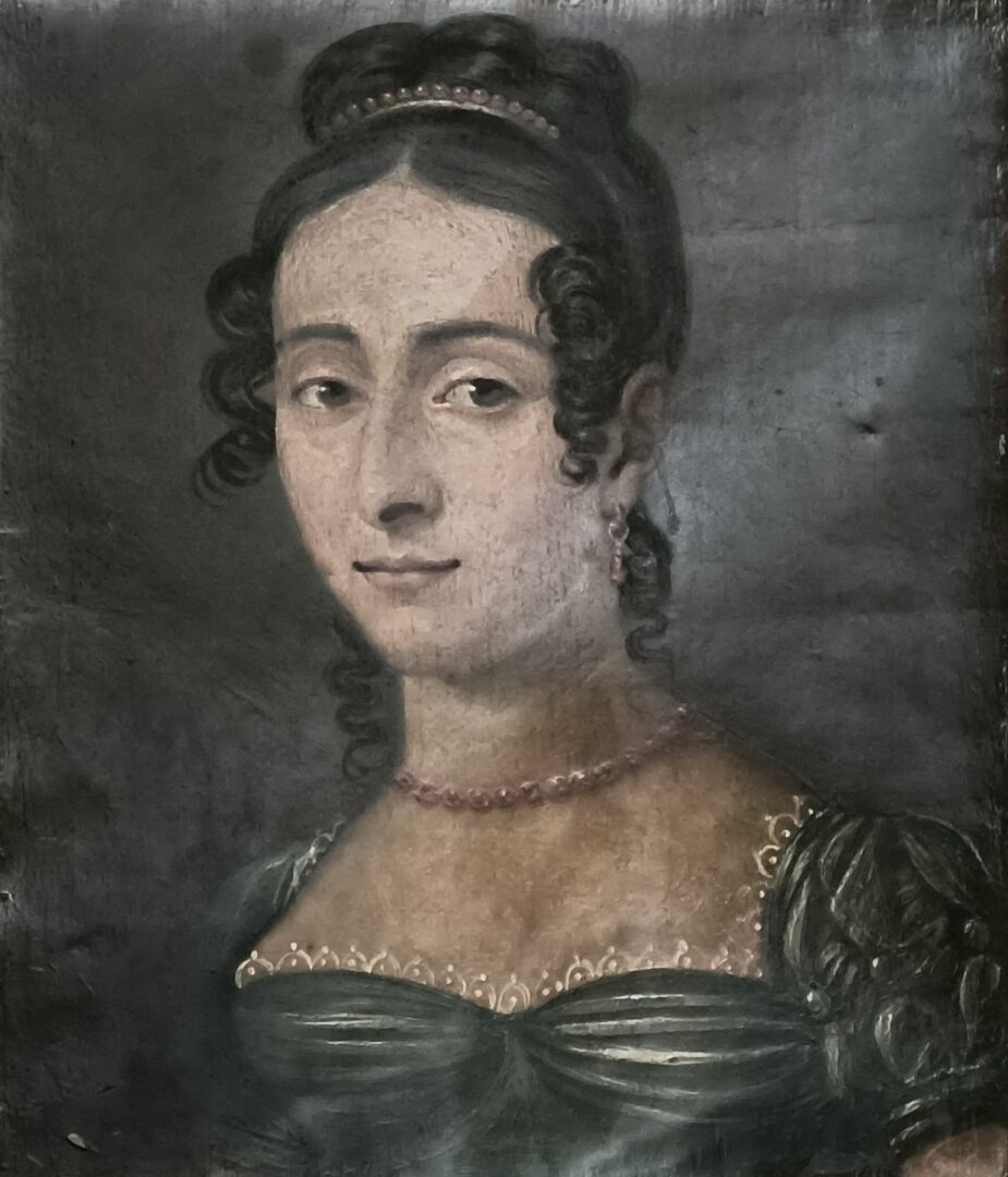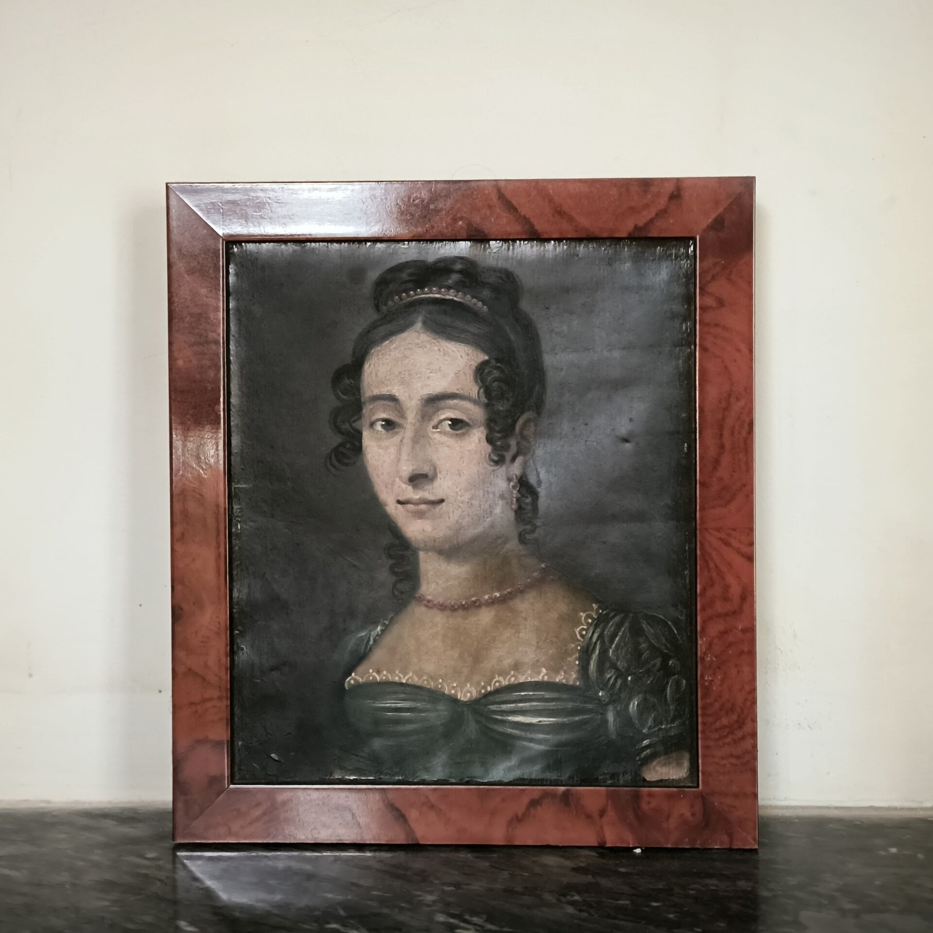 Early 19th century French school. Portraits of a young girl. Painting. 18,5 x 13 cm. Frame