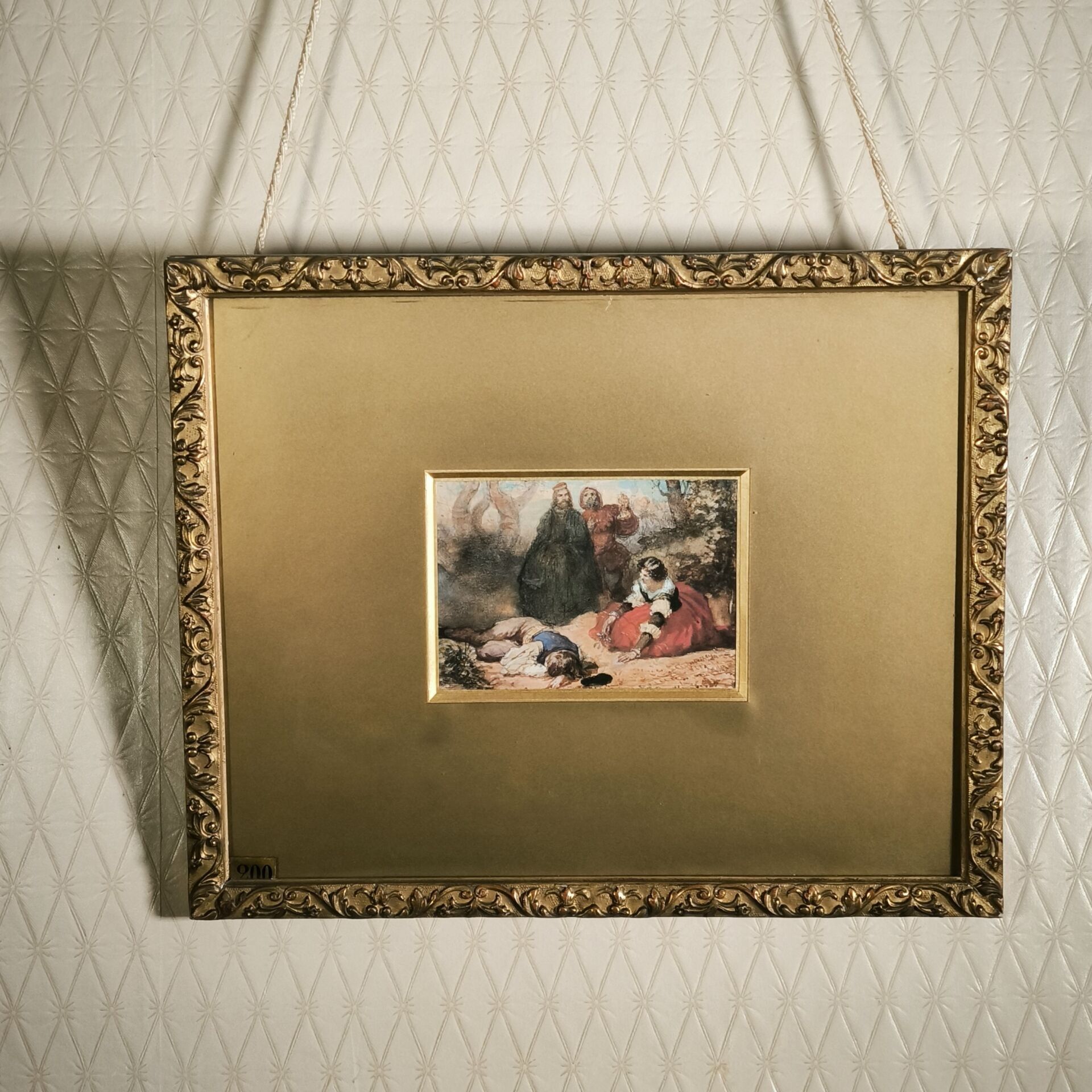 Eugène LAMI (1800-1890). Characters in medieval costumes. Watercolour. 10 x 14.5 cm (view). Frame