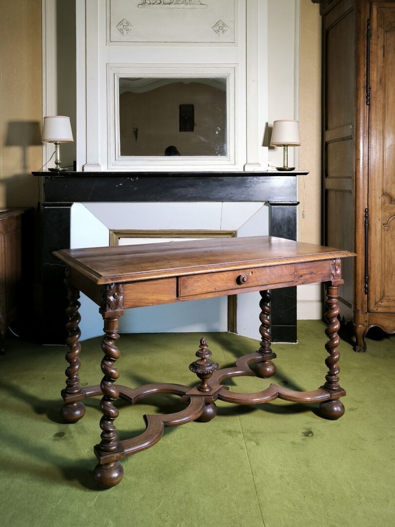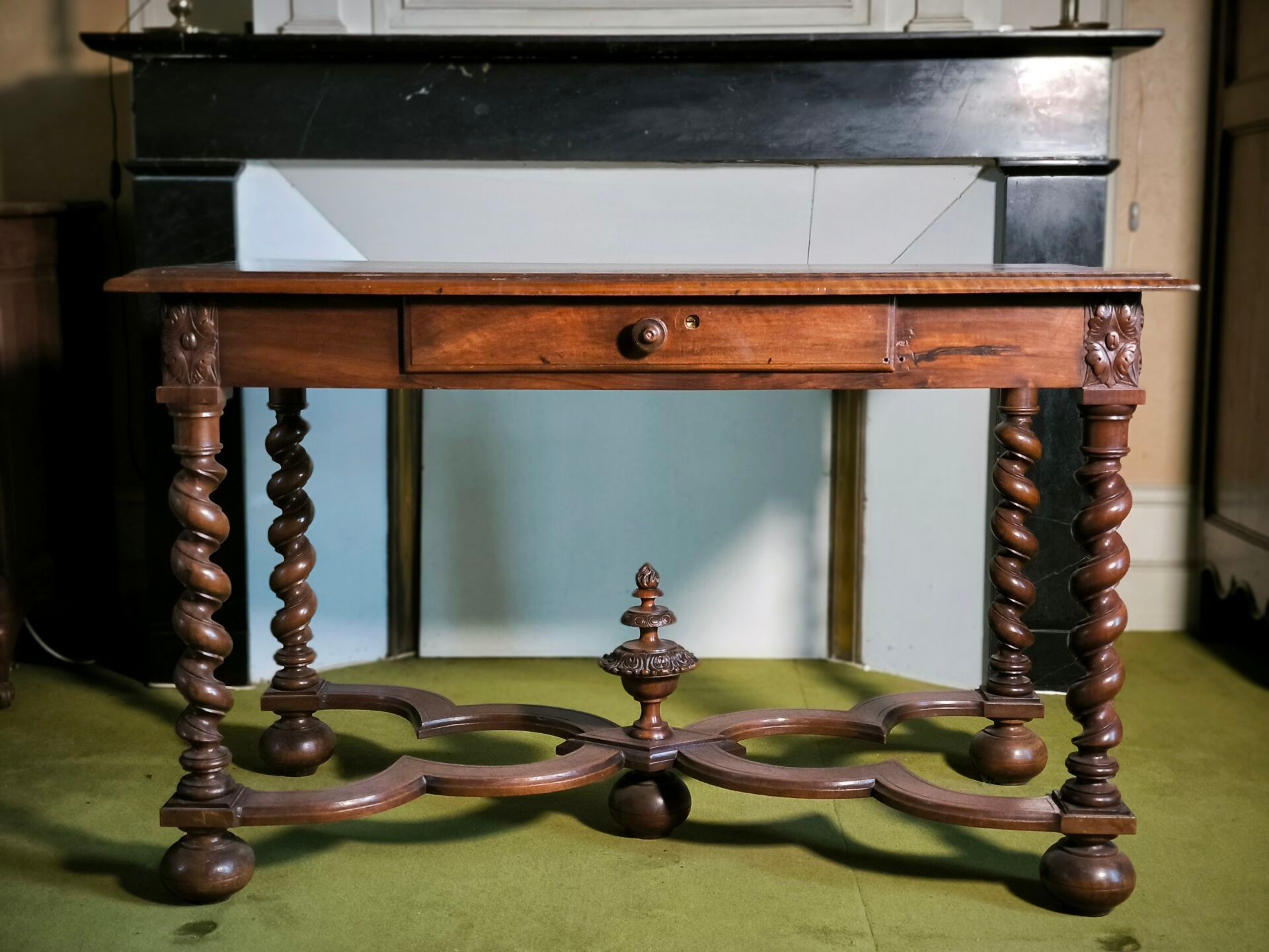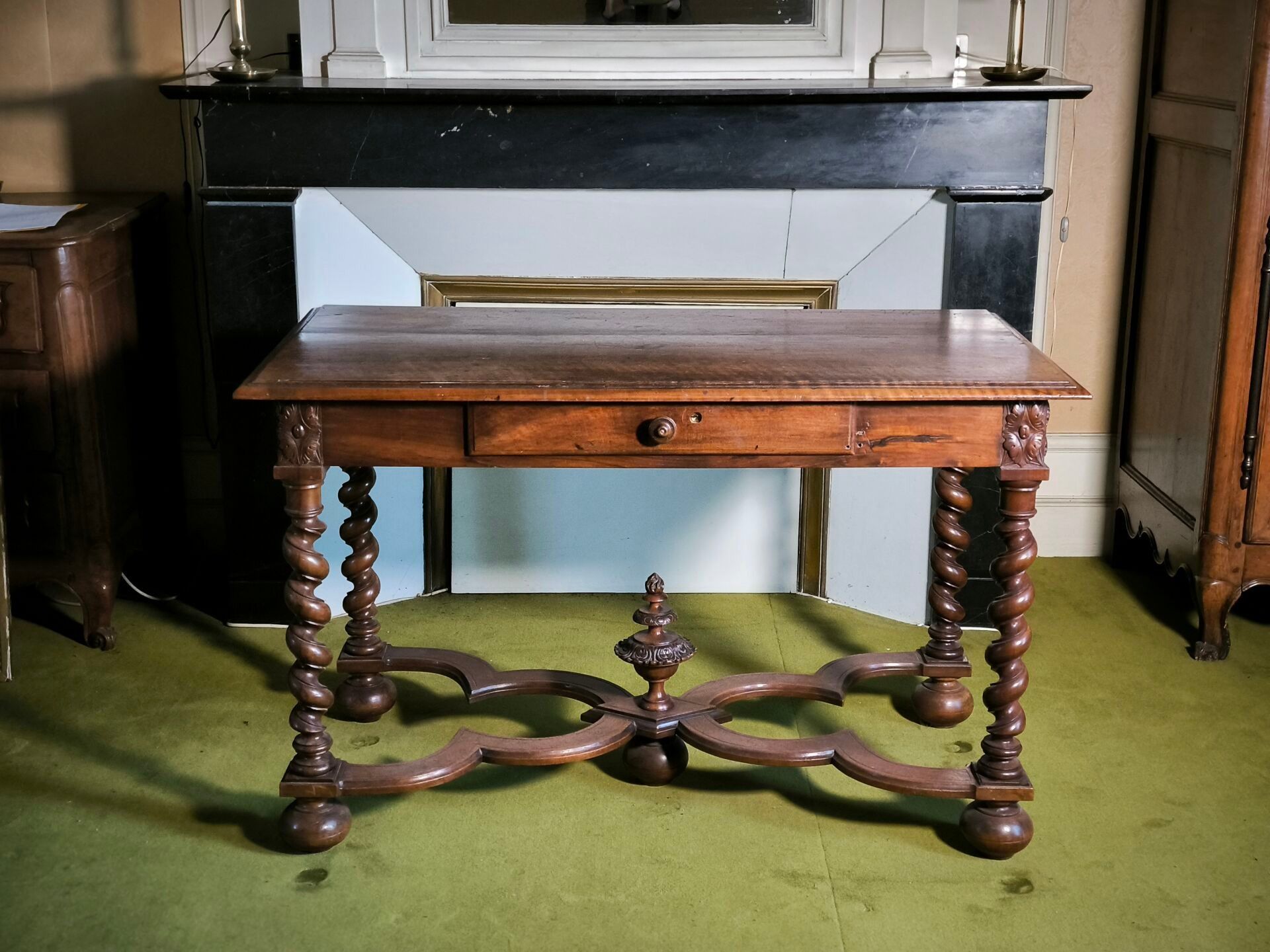 Walnut bureau table, Louis XIII style. Height 76 cm, length 122.5 cm, width 66.5 cm