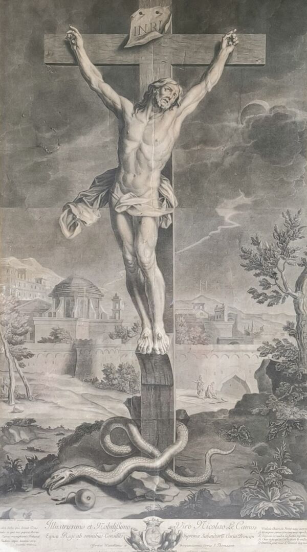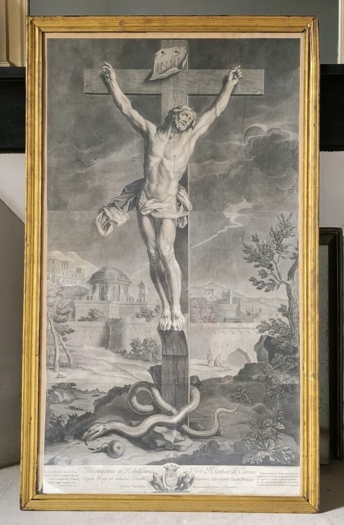GIRARDON (after). Crucifix. Engraving. 114 x 165 cm. Frame