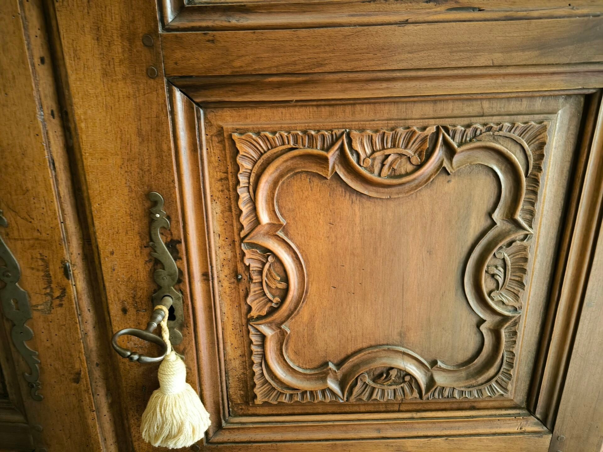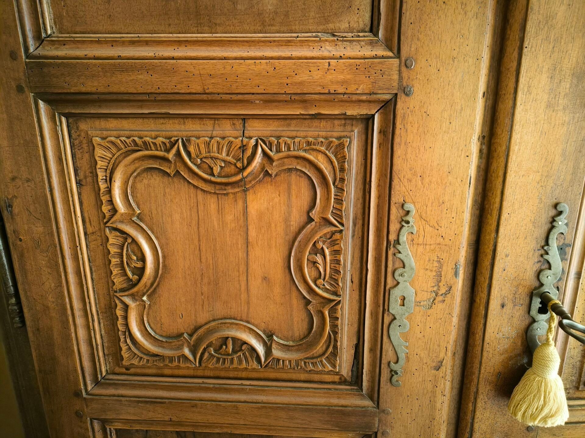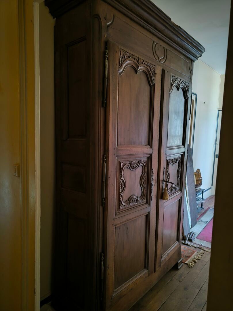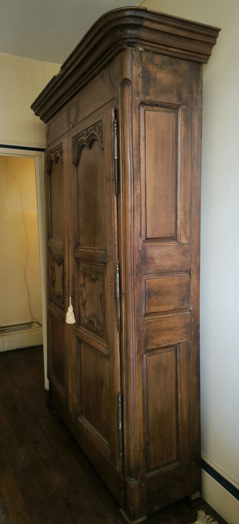 A moulded and carved cherrywood cupboard with two doors. Rennes 18th C. (minor damage) 224 cm high, 150 cm long, 50 cm deep.