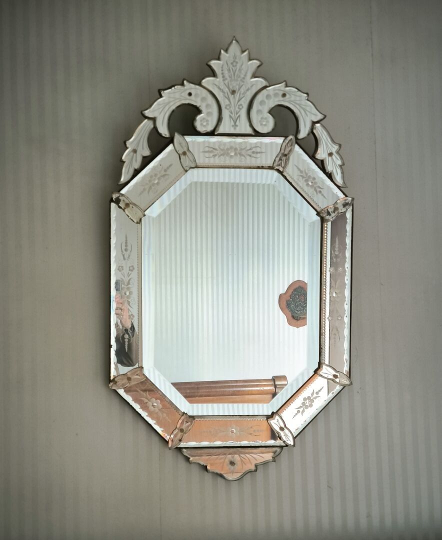 Engraved mirrored pediment window, 19th century (minor chips and accidents) 98 x 58 cm