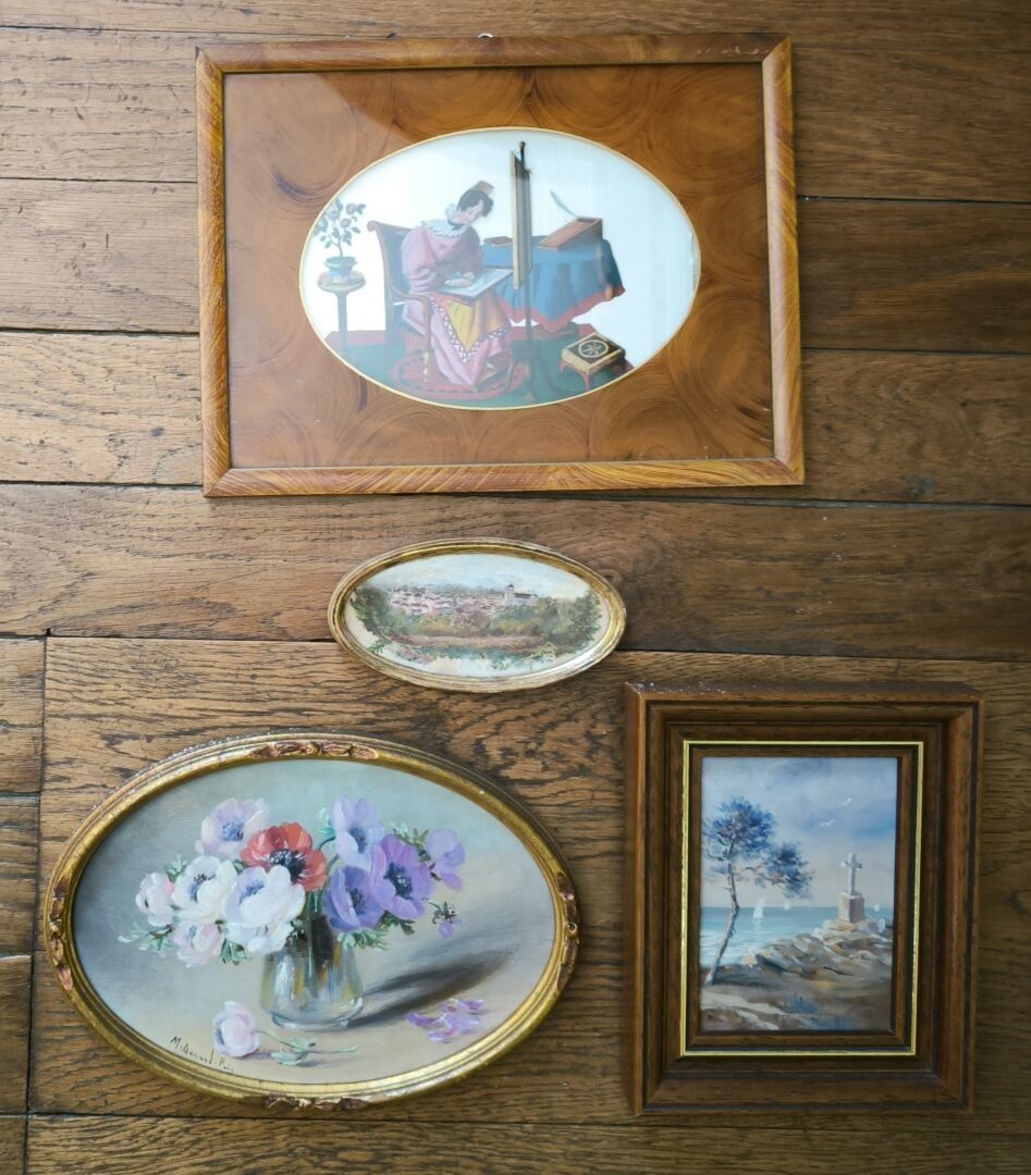 . Set of 4 frames : - Marthe DANARD PUIG (XIX-XXth). Bouquet…
