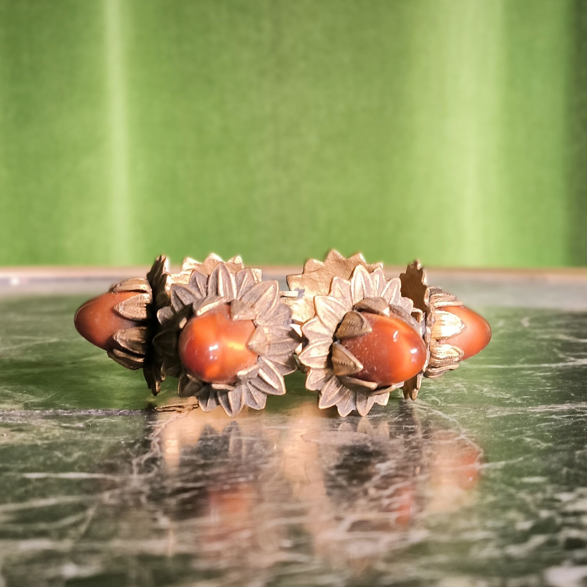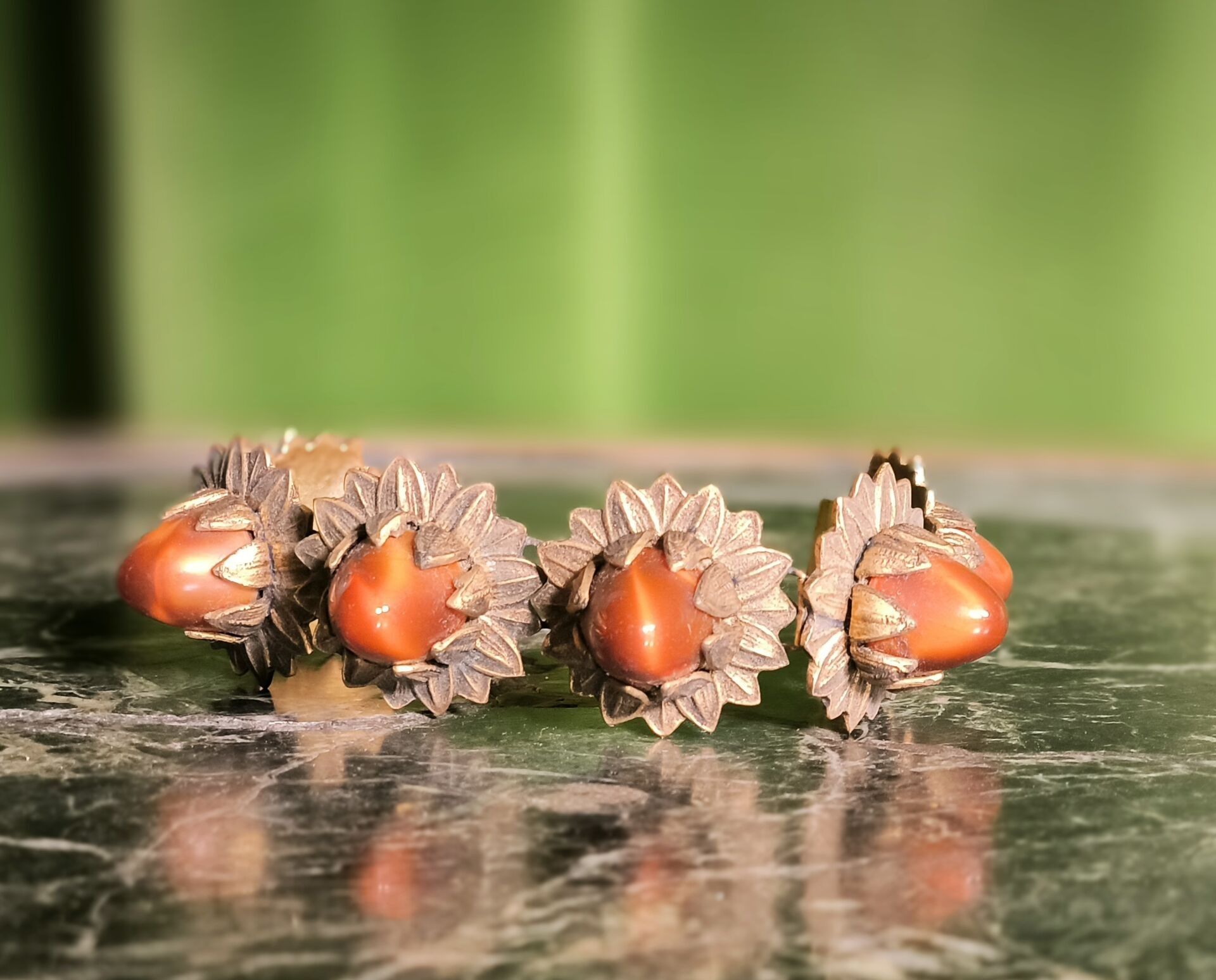 Metal bracelet set with 6 sugar loaf stones. 20 cm long