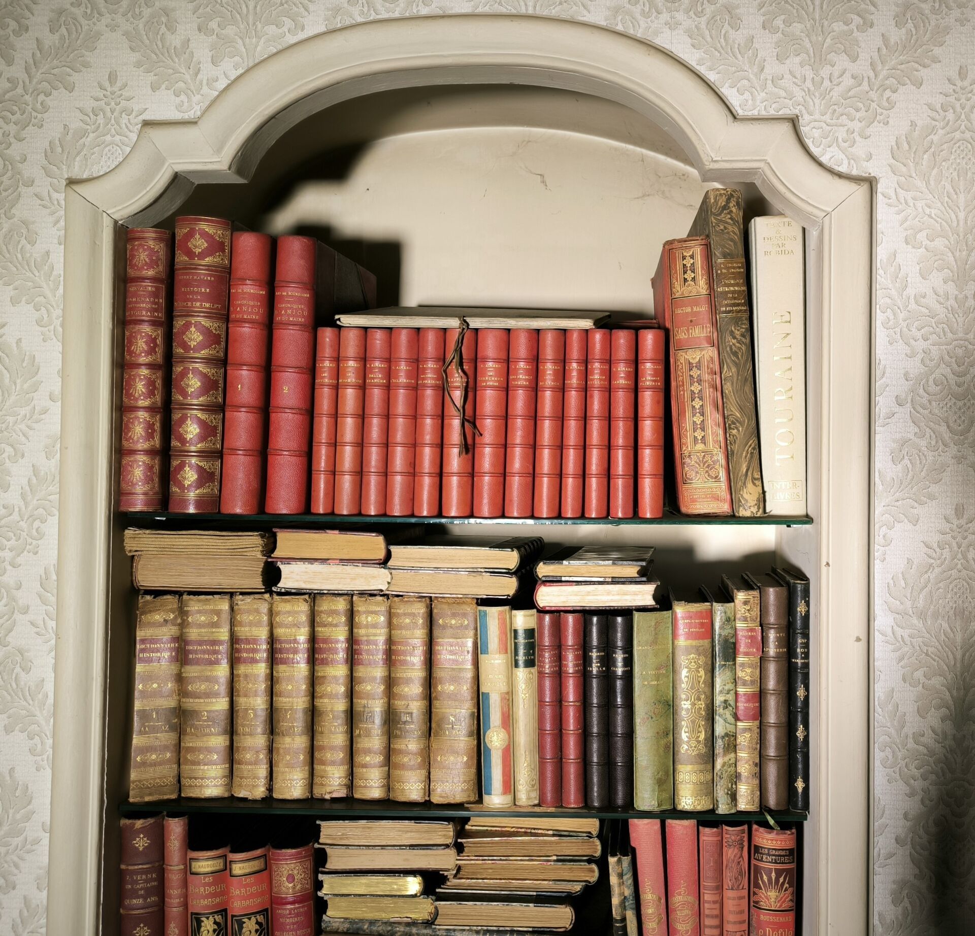 . A collection of old and modern books, including Maupassant, Havard, Touraine, Bourdigné and others.