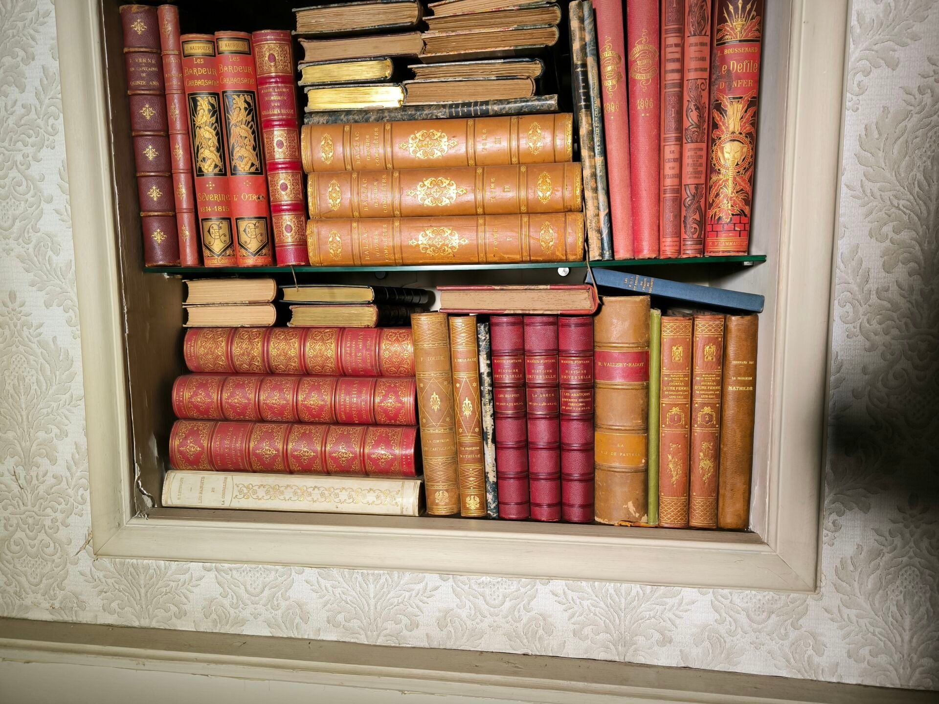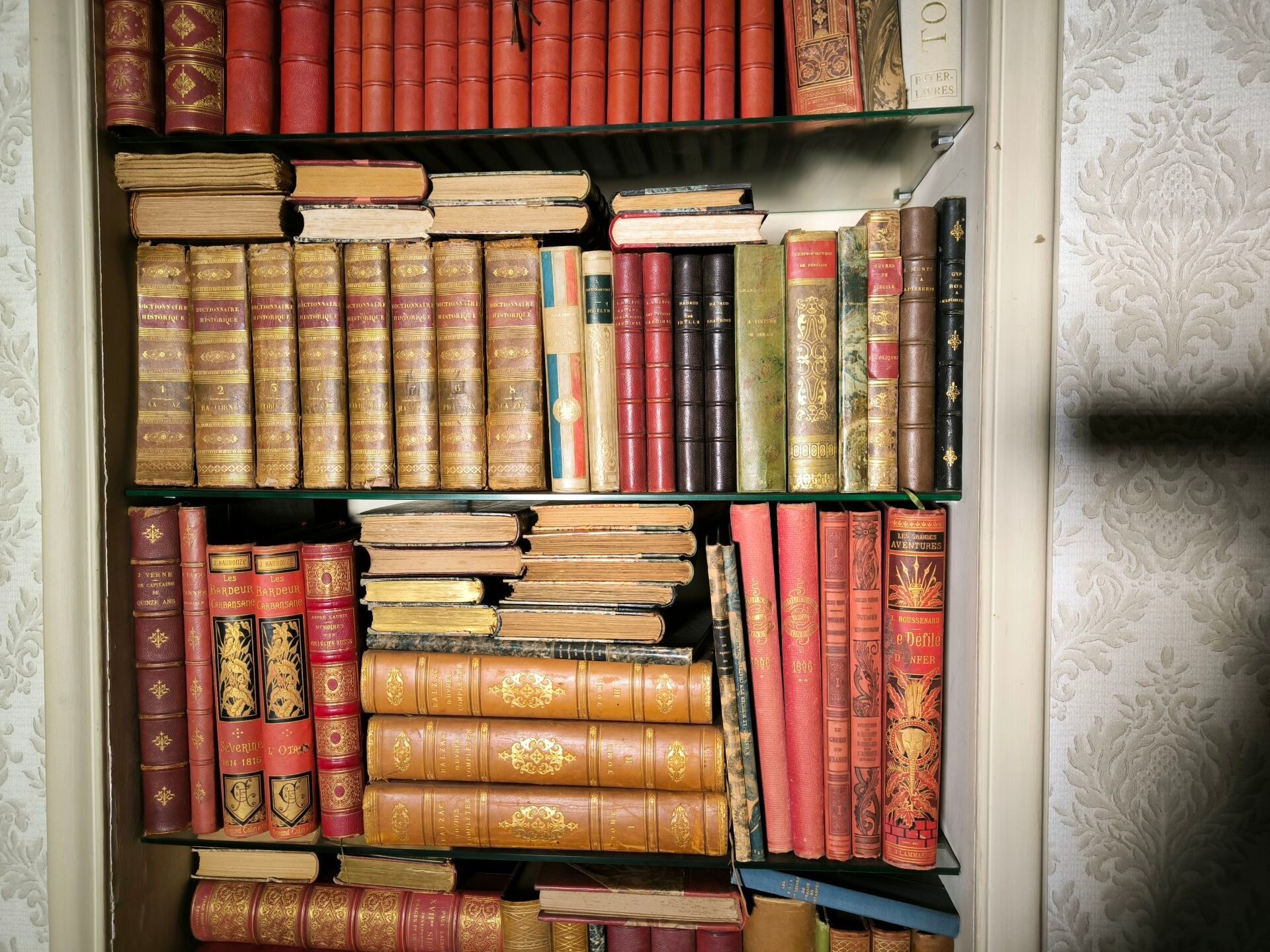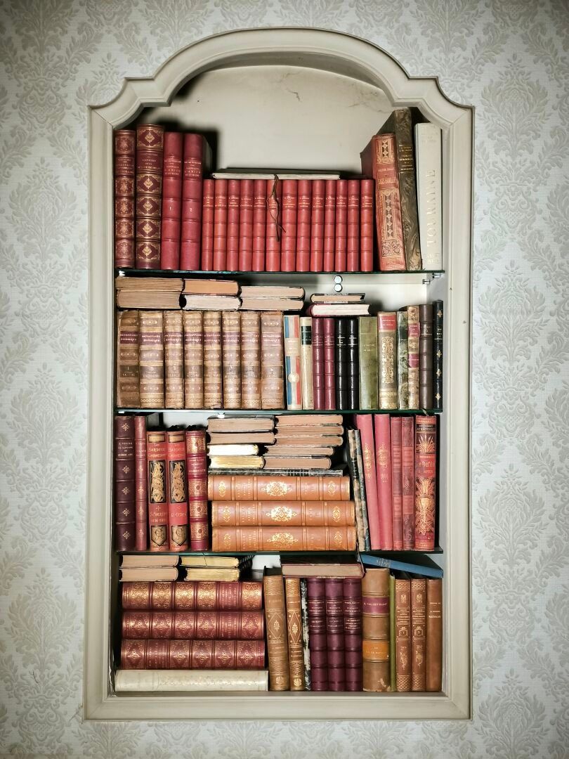 . A collection of old and modern books, including Maupassant…