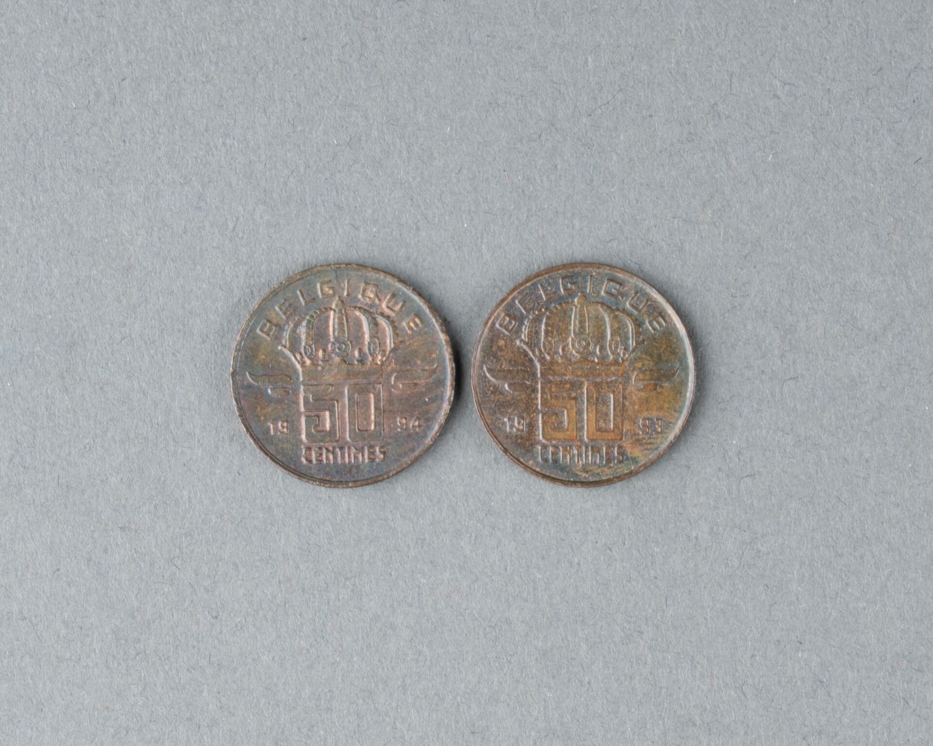 Constantin Emile MEUNIER (1831-1905). 2 Belgian 50 centime coins, 1993 and 1994