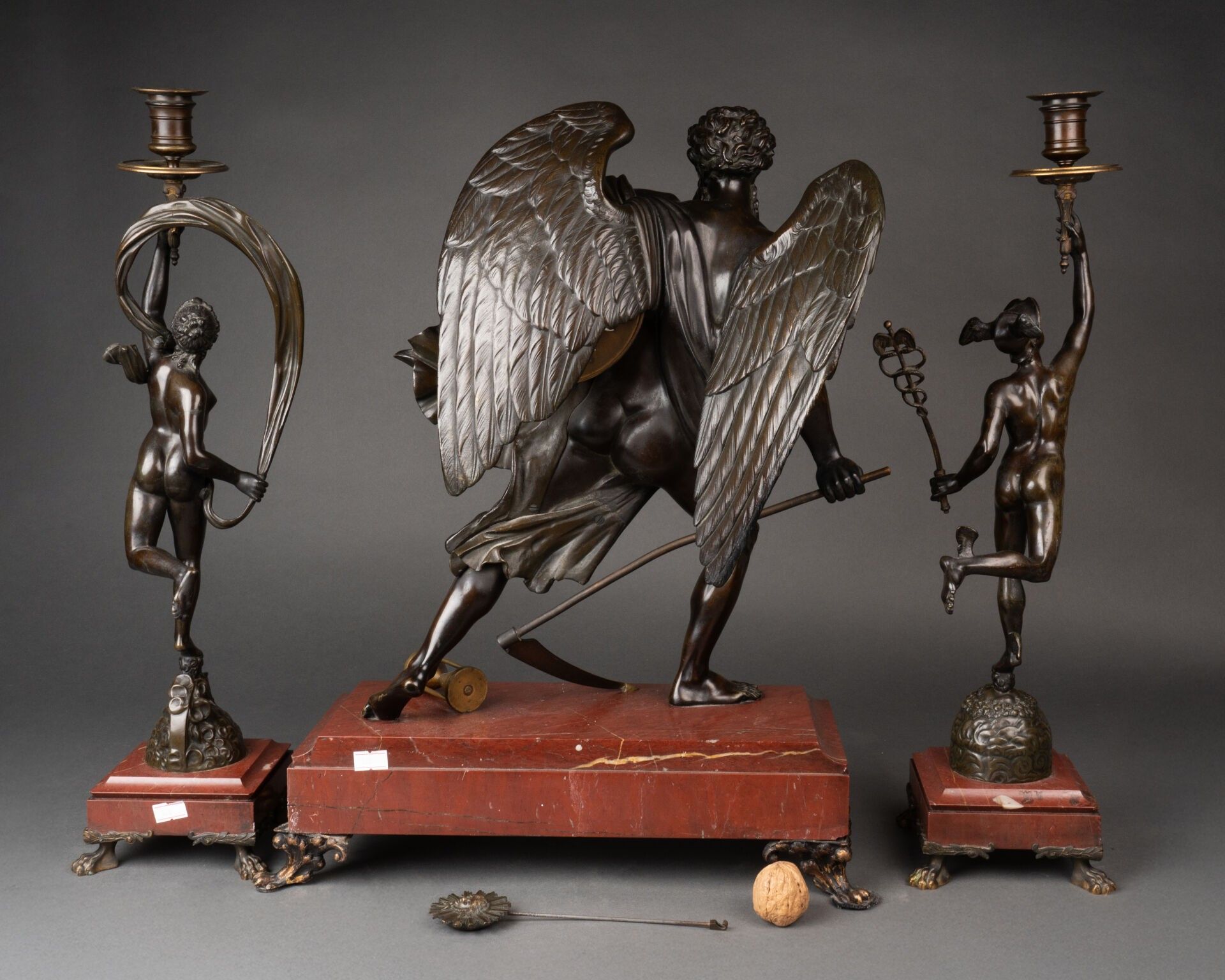 The clock in the form of the Allegory of Time, the torches in the form of Diana and Hermes