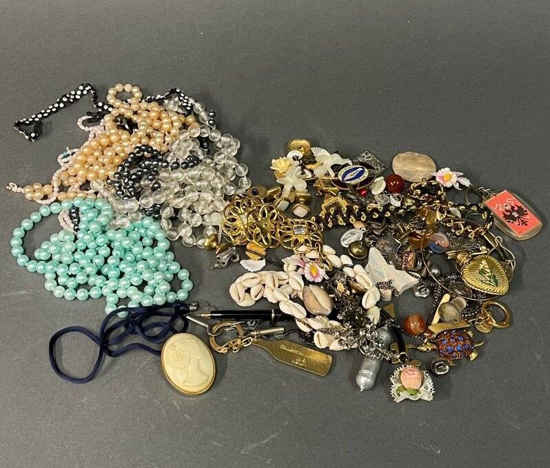 Lot of costume jewellery including an oval cameo pendant with a young woman in profile