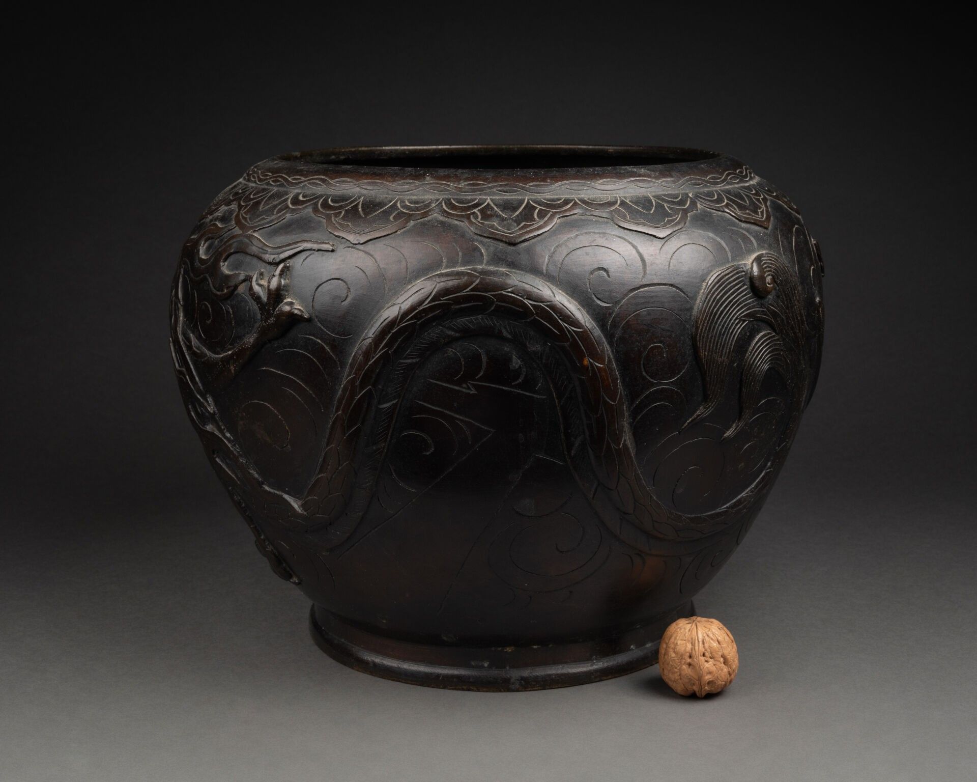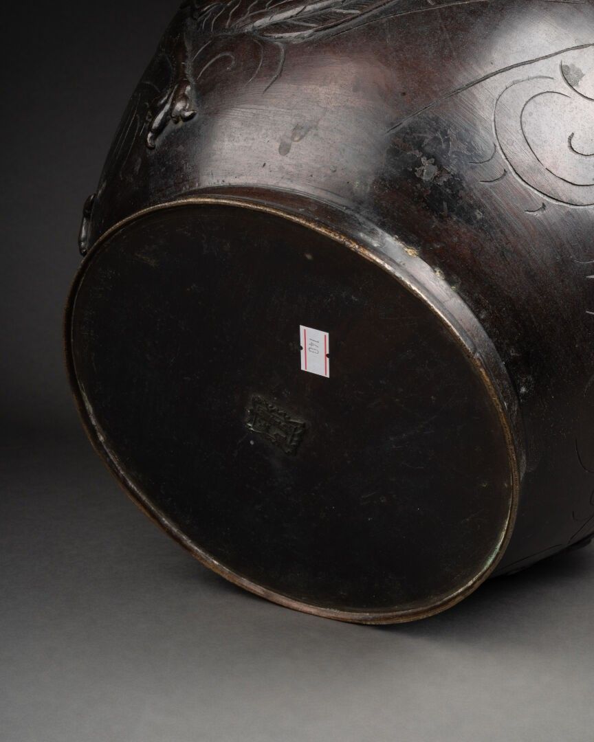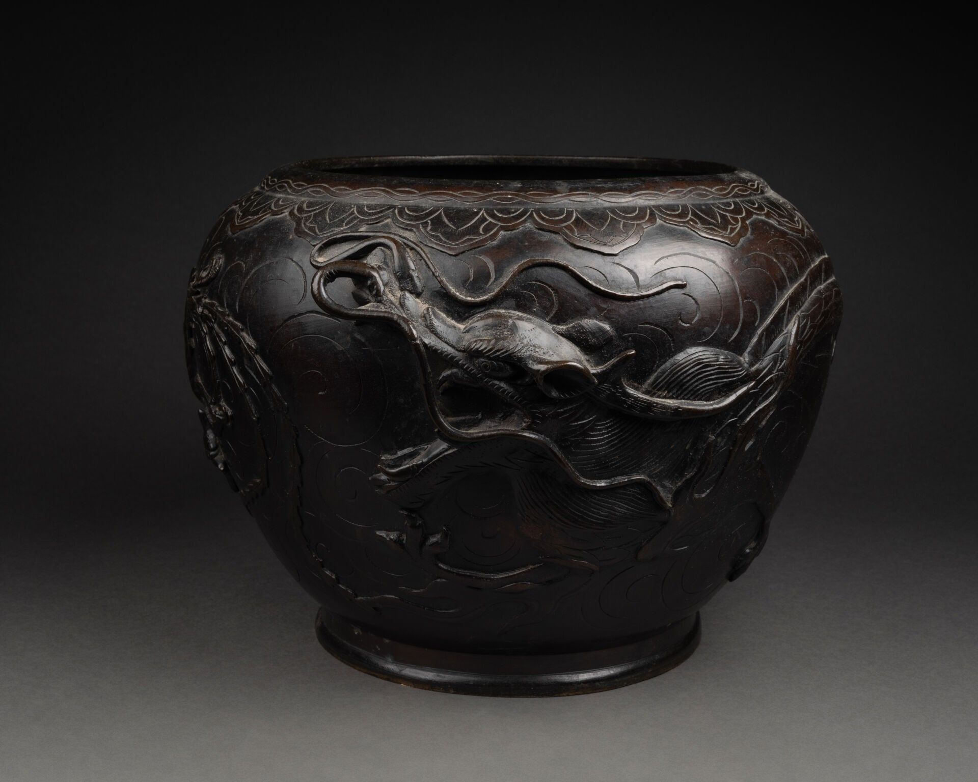 JAPAN - Meiji period (1868 - 1912). CACHE-POT decorated with a dragon and a phoenix in the clouds