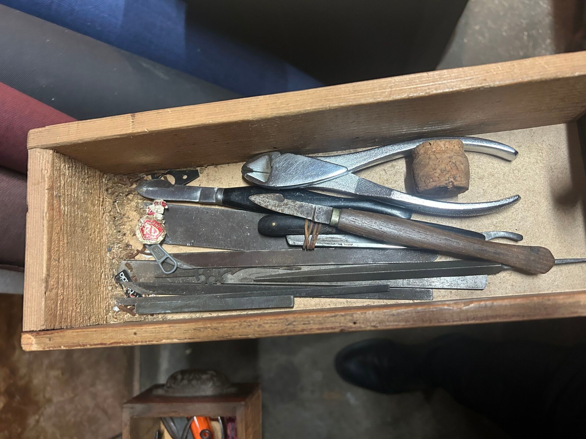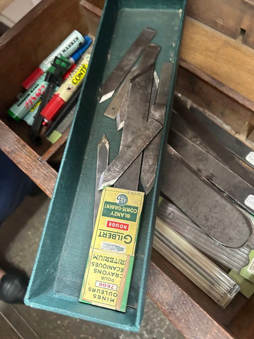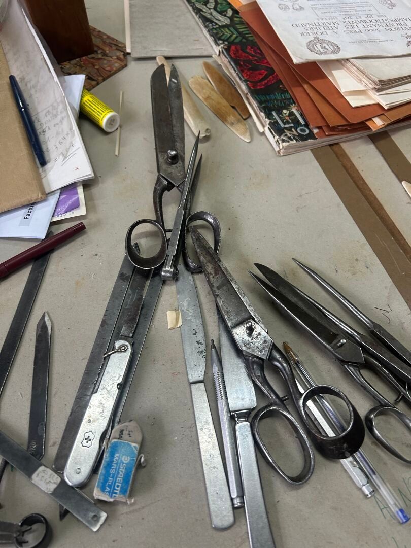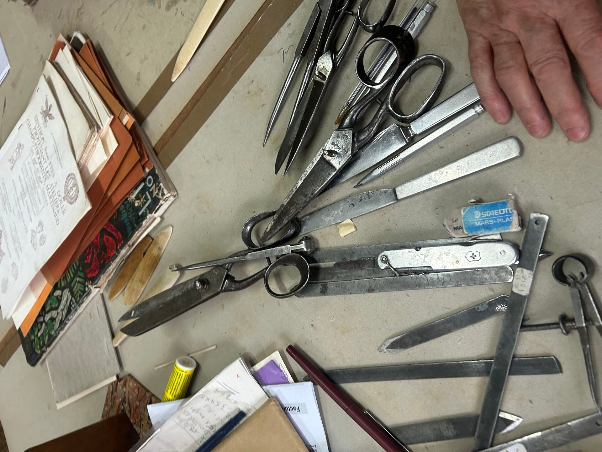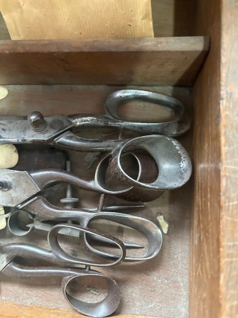 1 set of tools including scissors, points, scrapers, pruning knives, compasses and miscellaneous items