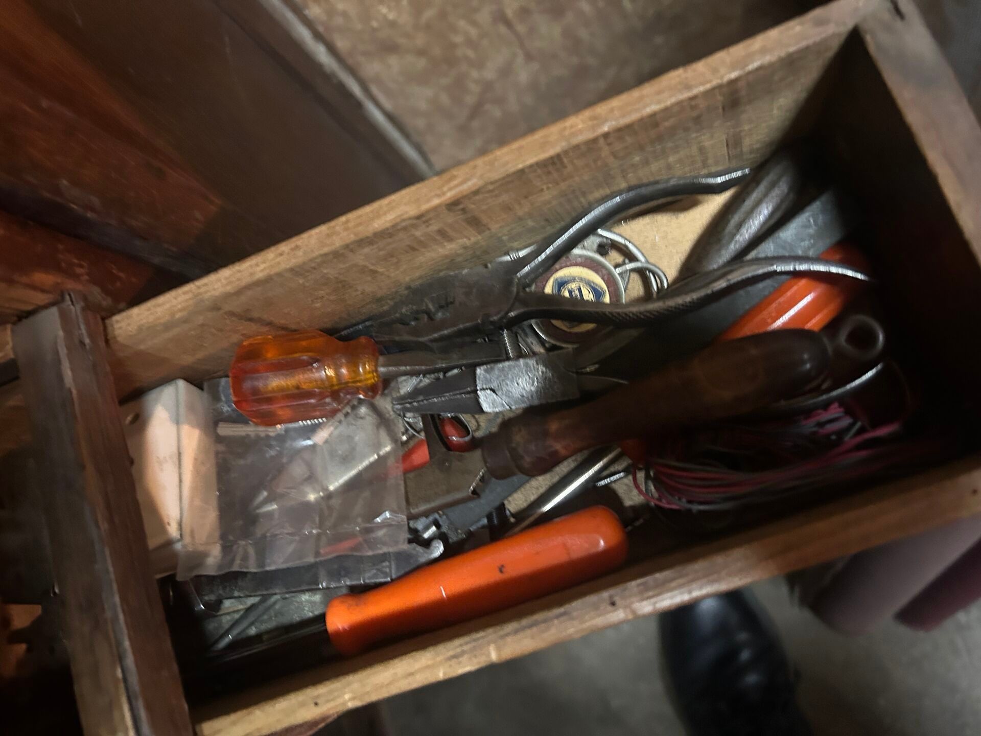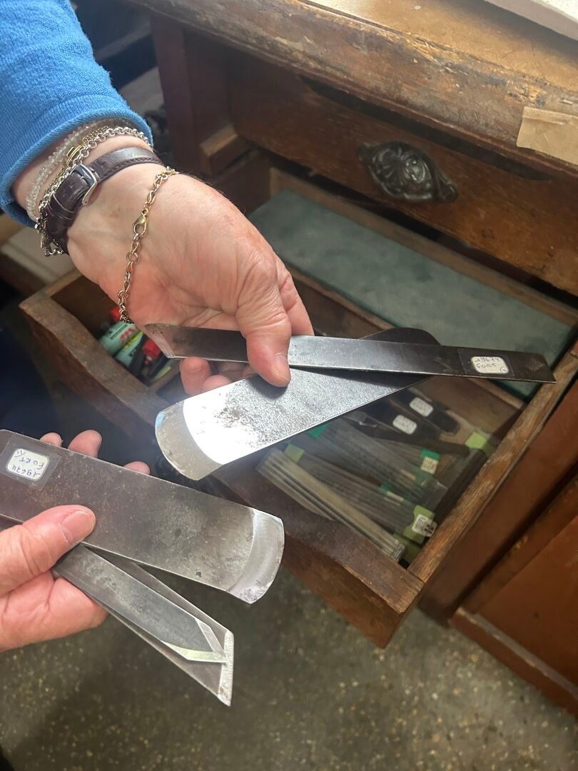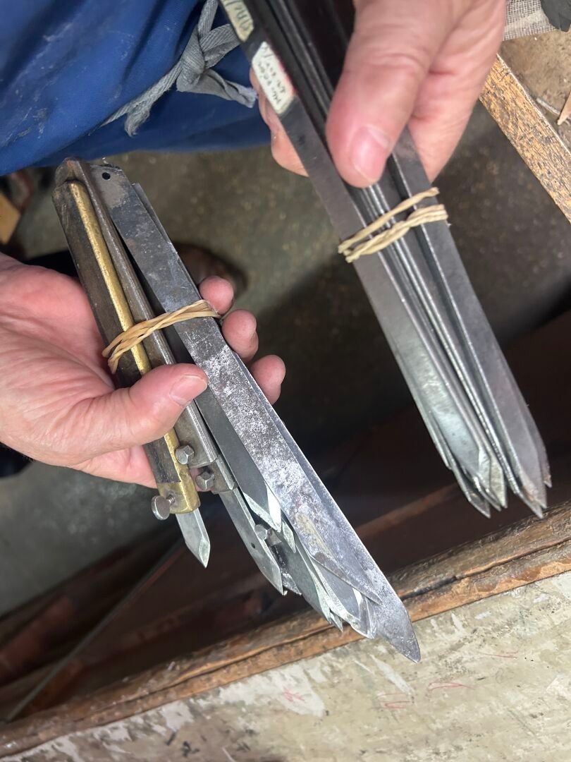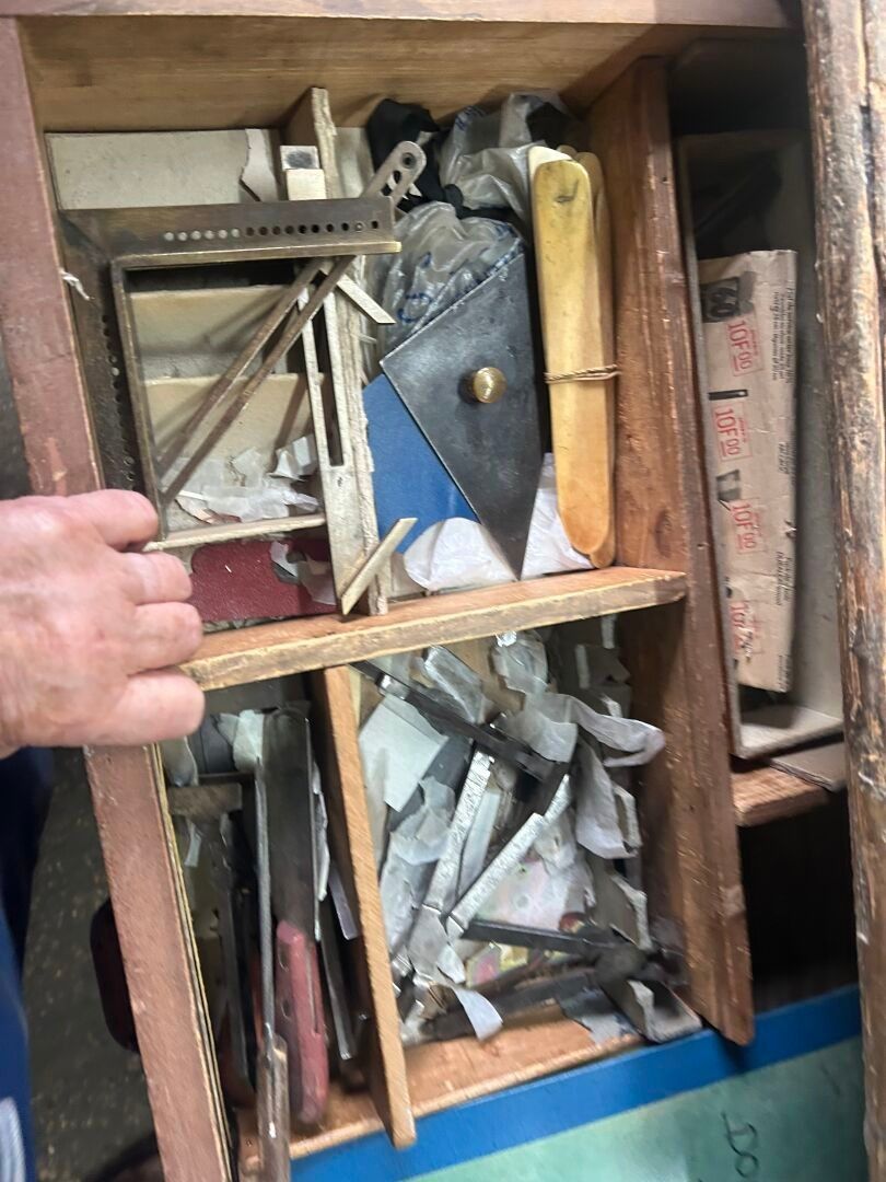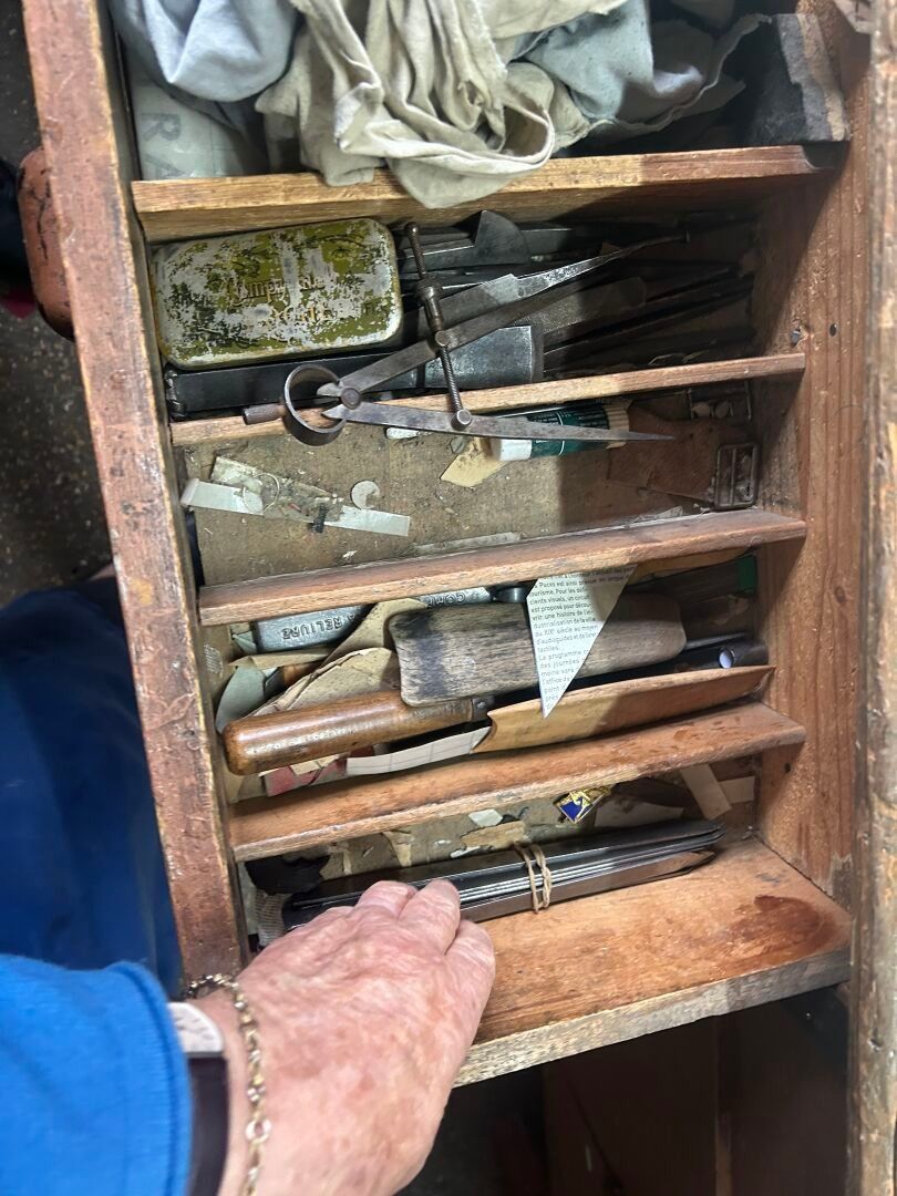 1 set of tools including scissors, points, scrapers, pruning knives, compasses and miscellaneous items