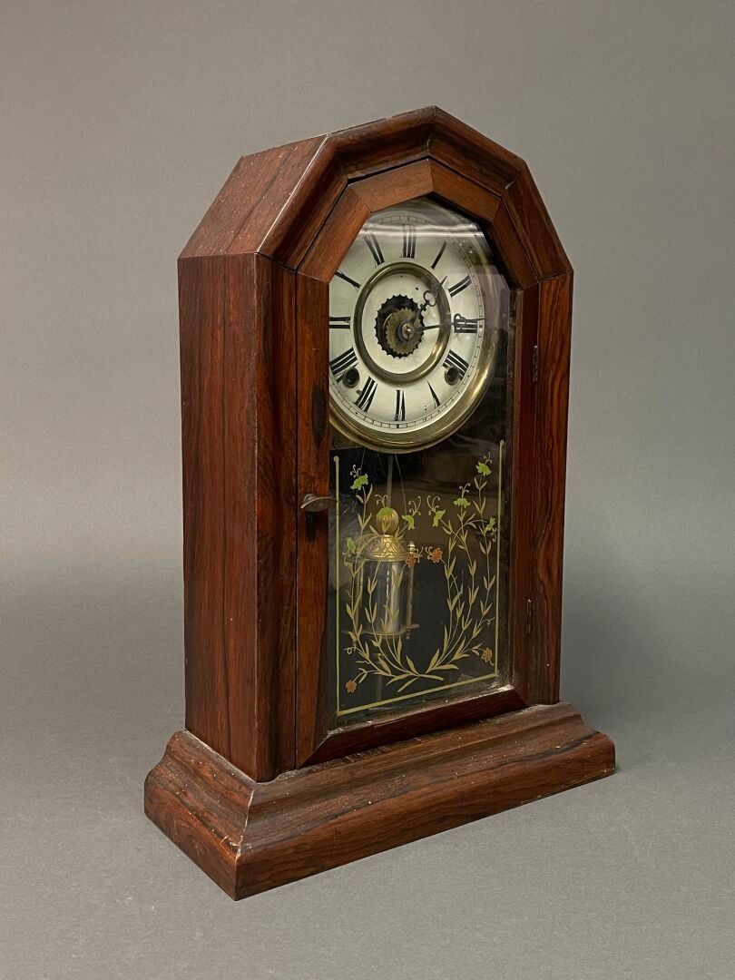 CLOCK with pendulum The white enamelled dial showing the hou…