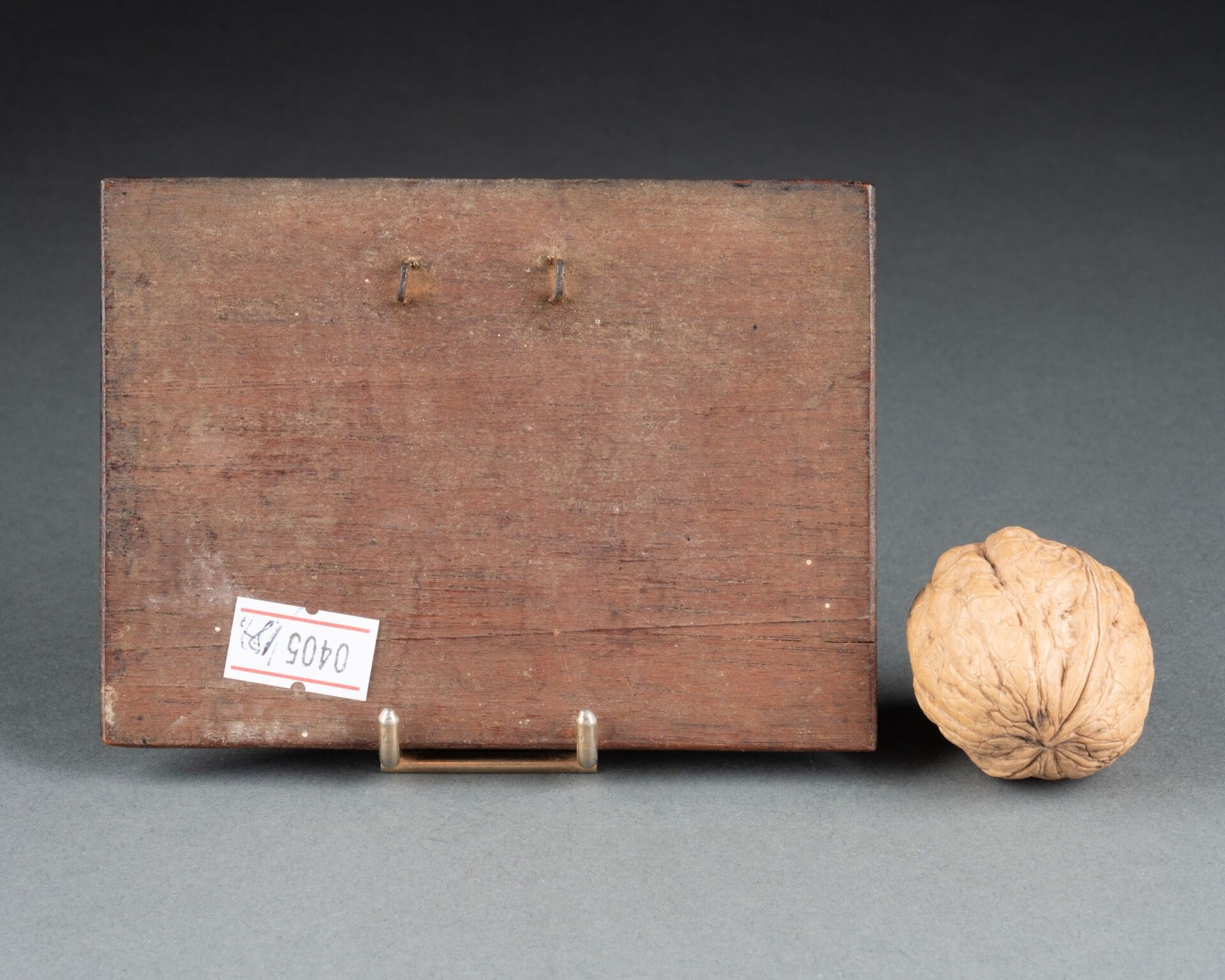 Embossed metal, moulded wooden base