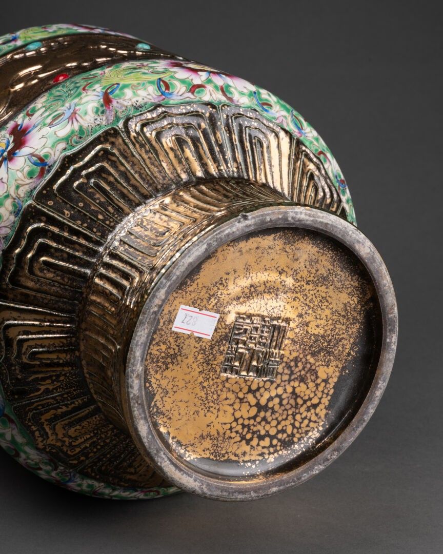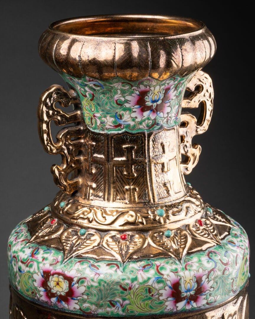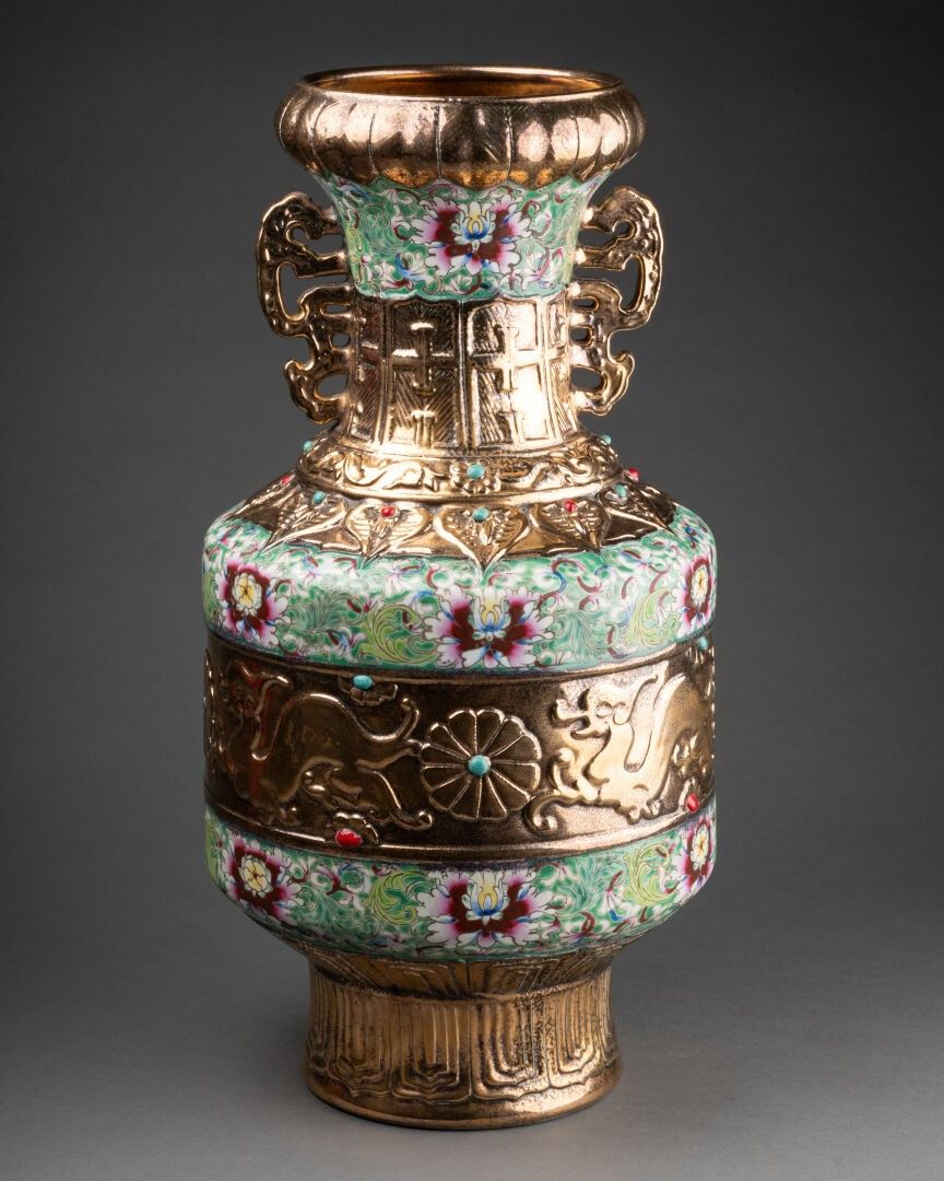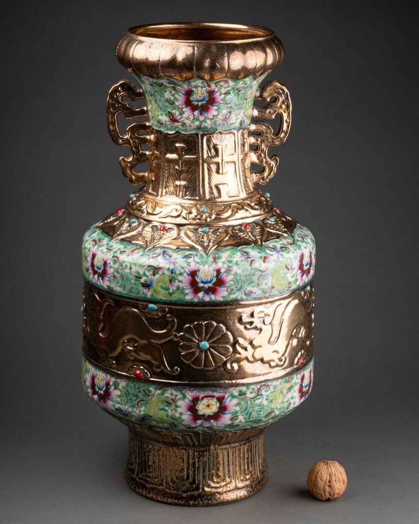 CHINA - 19th century. Baluster vase with two handles, the ar…