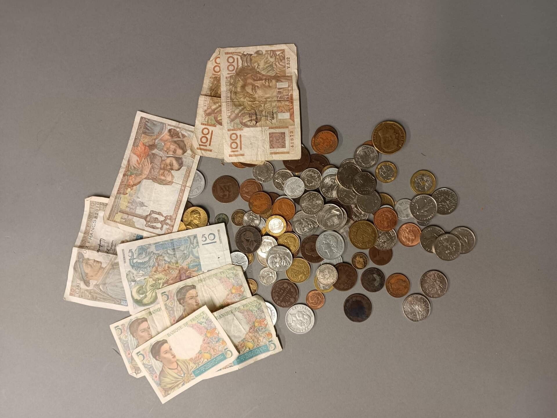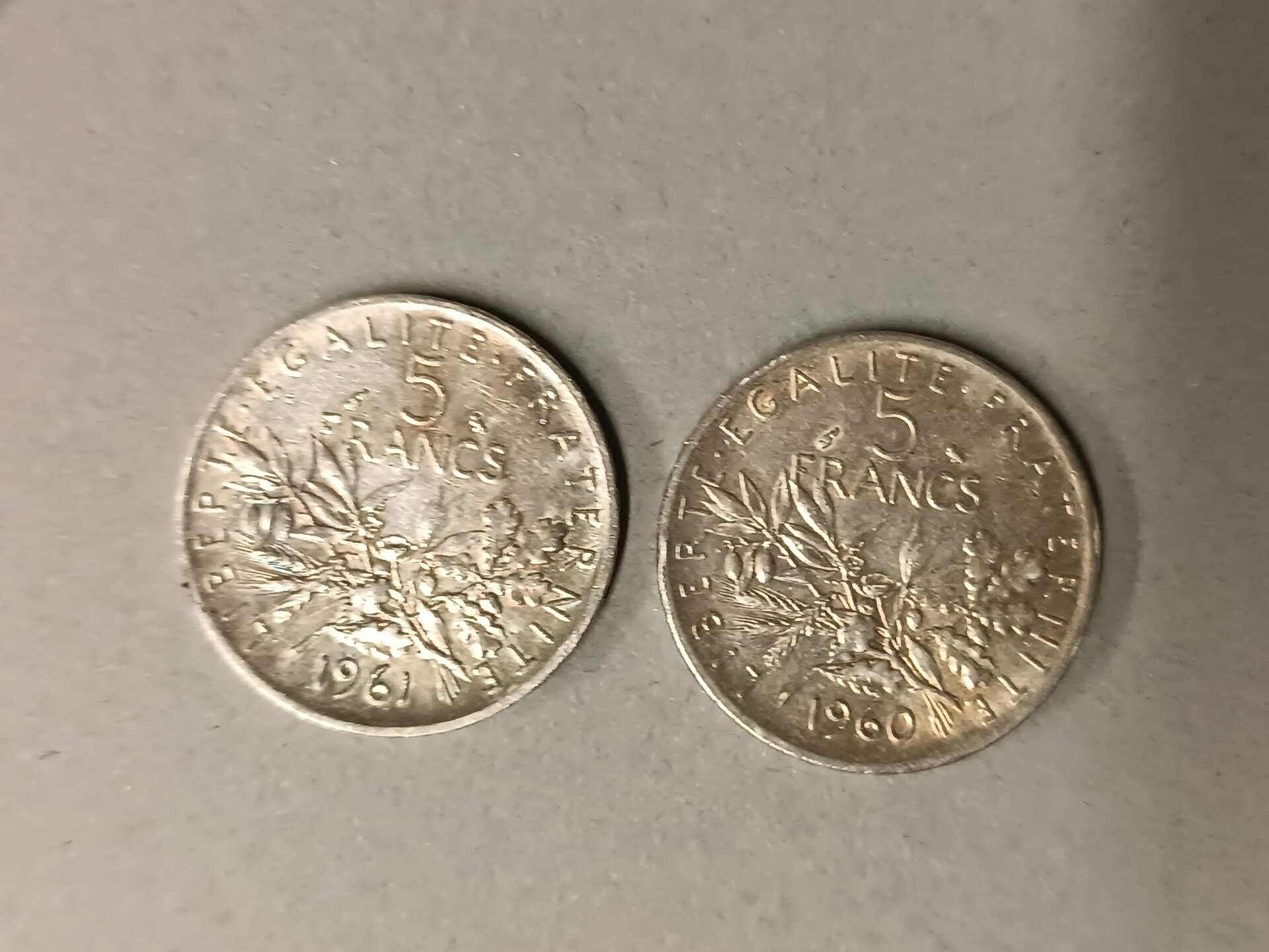 Mainly Francs and old Francs including two silver 5 Francs coins 1960 and 1961