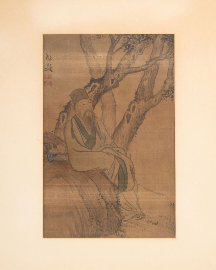 JAPAN - KANO school - 18th-19th century. Old man sitting in the vegetation