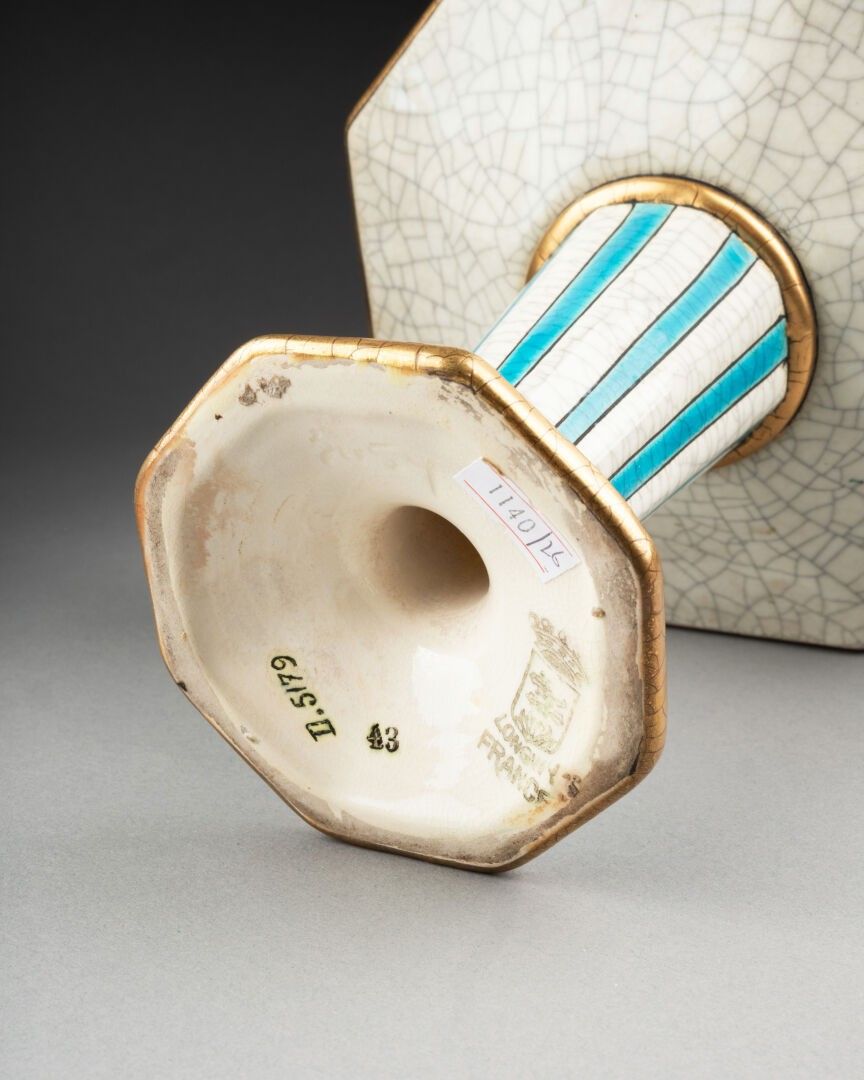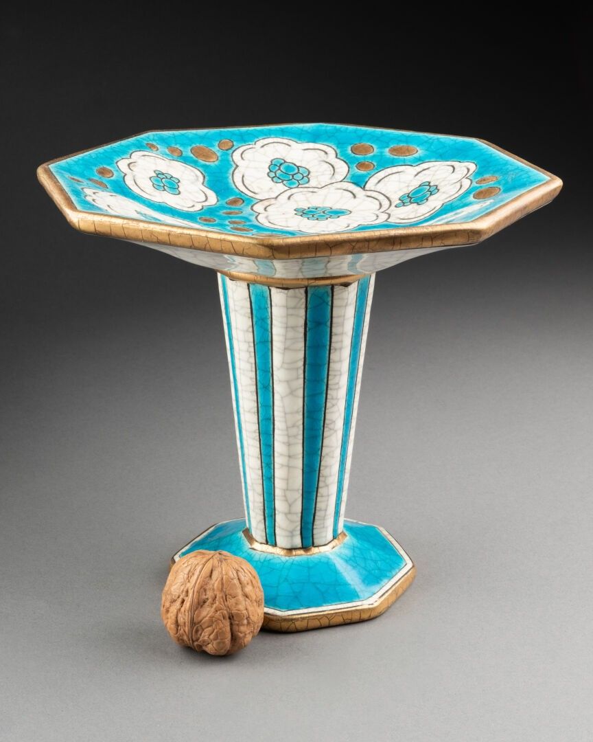 LONGWY- About 1930. CUP on an octagonal pedestal decorated w…