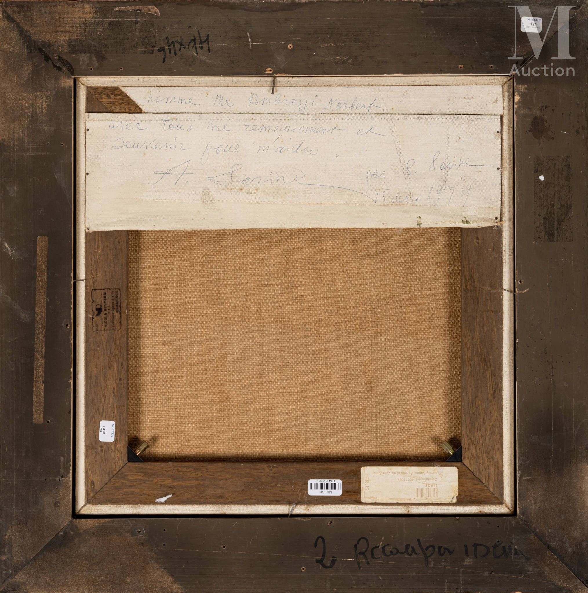 On a canvas backing fixed to the back of the stretcher, signed and dedicated by A. Sorine, son of the artist "To Sorine" and the handwritten indications in pen "Monsieur Ambroggi Norbert avec tous mes remerciements et souvenirs pour m'aider, par S. Sorine 15 dec 1979".