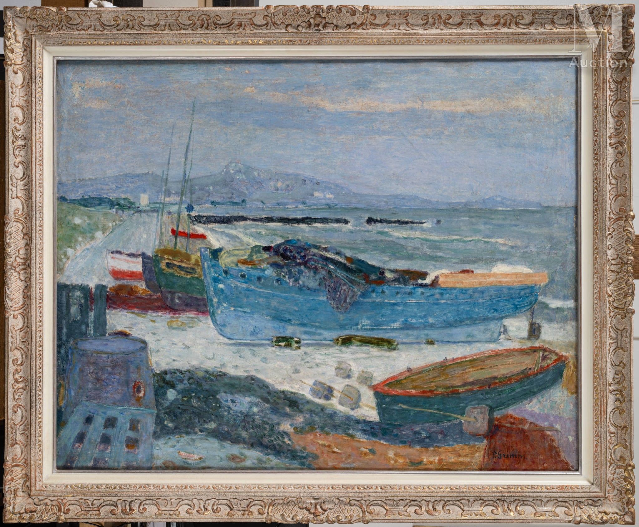 On the back of the canvas, the label "P. Grimm 31 Bd. Saint Jacques Paris (14e)".