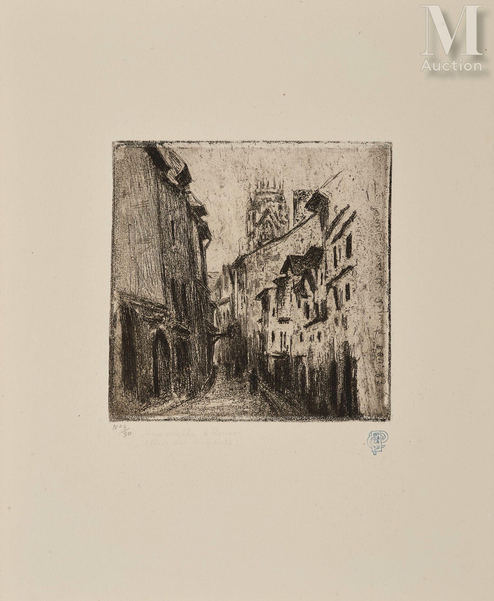Annotation partially erased in pencil in the lower margin: Une Ruelle à Rouen (rue des Arpents)