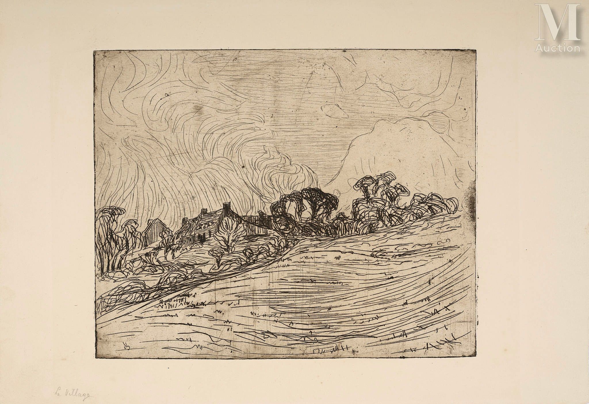 First state proof (of 2), before O'Conor's signature in the plate, annotated in pencil lower left Le Village